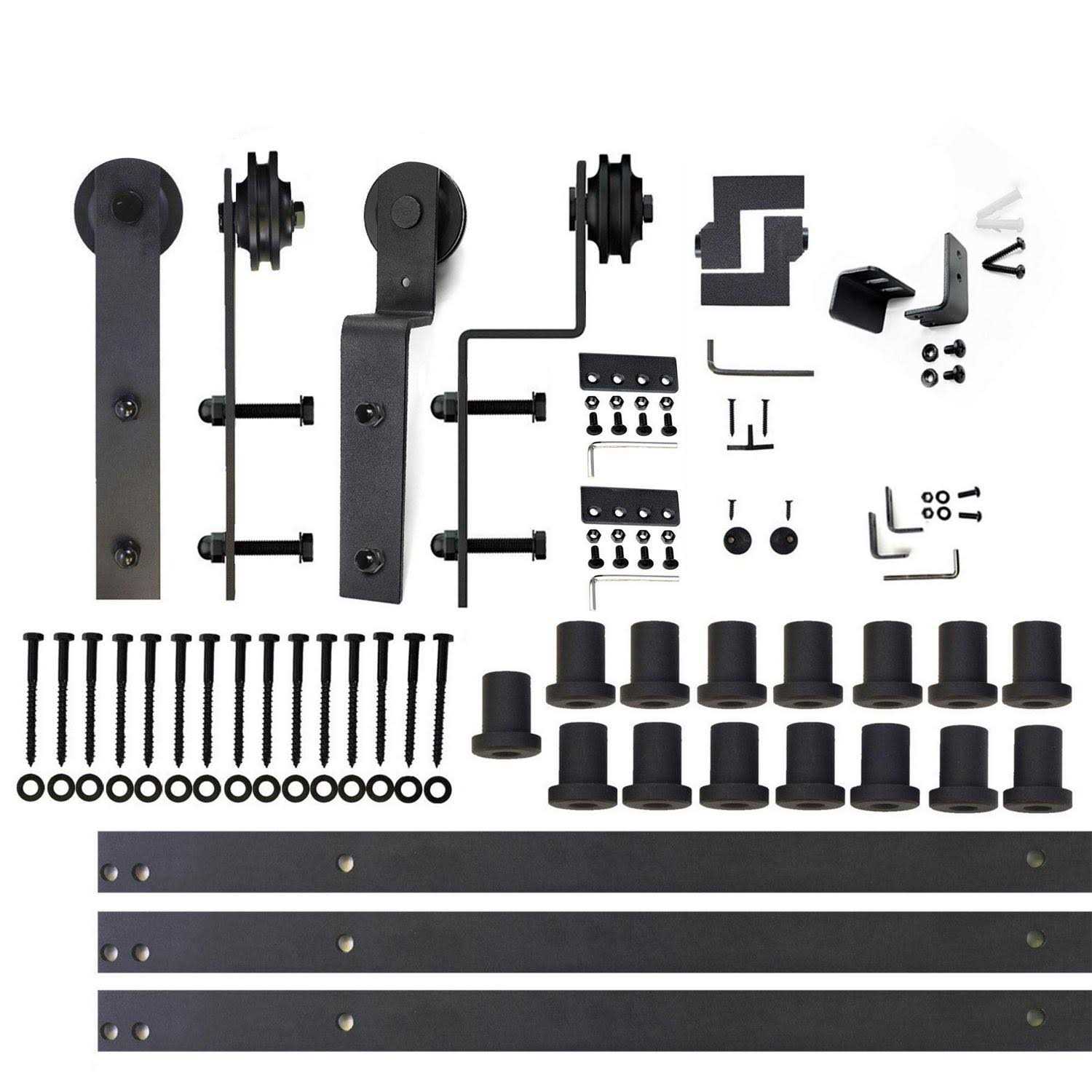Homacer Black Rustic Single Track Bypass Sliding Barn Door Hardware Kit Straight Design Roller for Double Doors