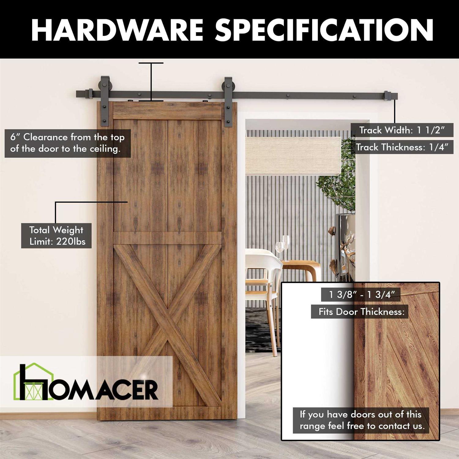Let’s get those doors on track, HOMACER is in town. You don’t have to search anywhere else for the best sliding hardware you can get. Choosing the style of hardware you need is that simple. It will be the best fit for any type of space to pump up the esthetic look and feel of the area. Color: Black.