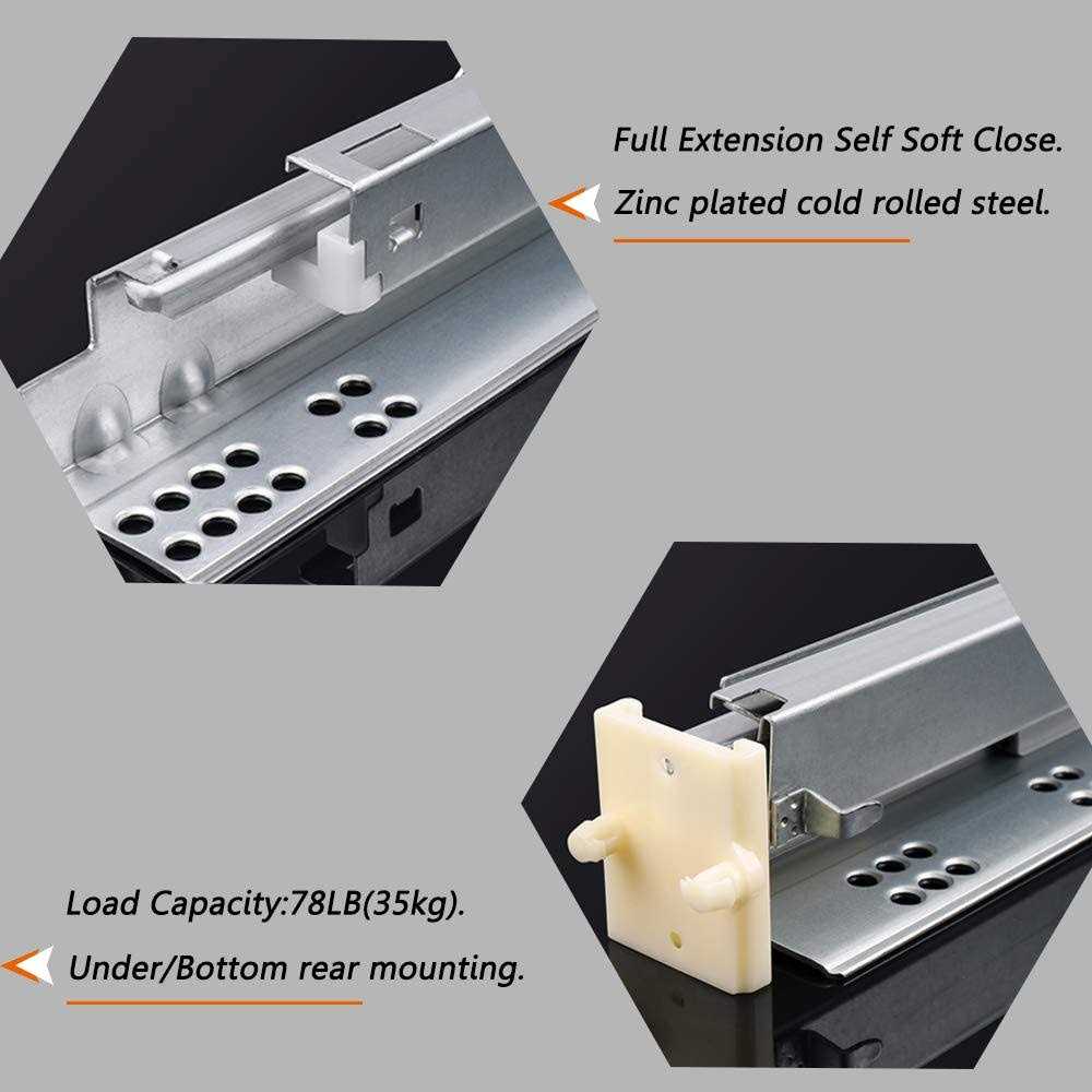 Home Building Store of Self Soft Close Under/Bottom Rear Mounting Drawer Slides Concealed Drawer Runners;Locking Devices;Rear Mounting Brackets;Screws