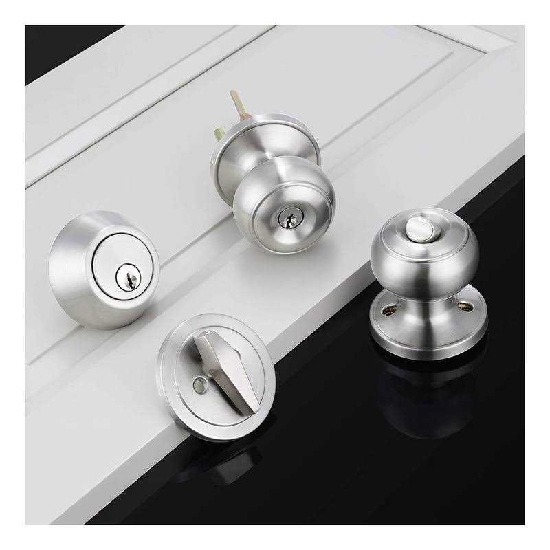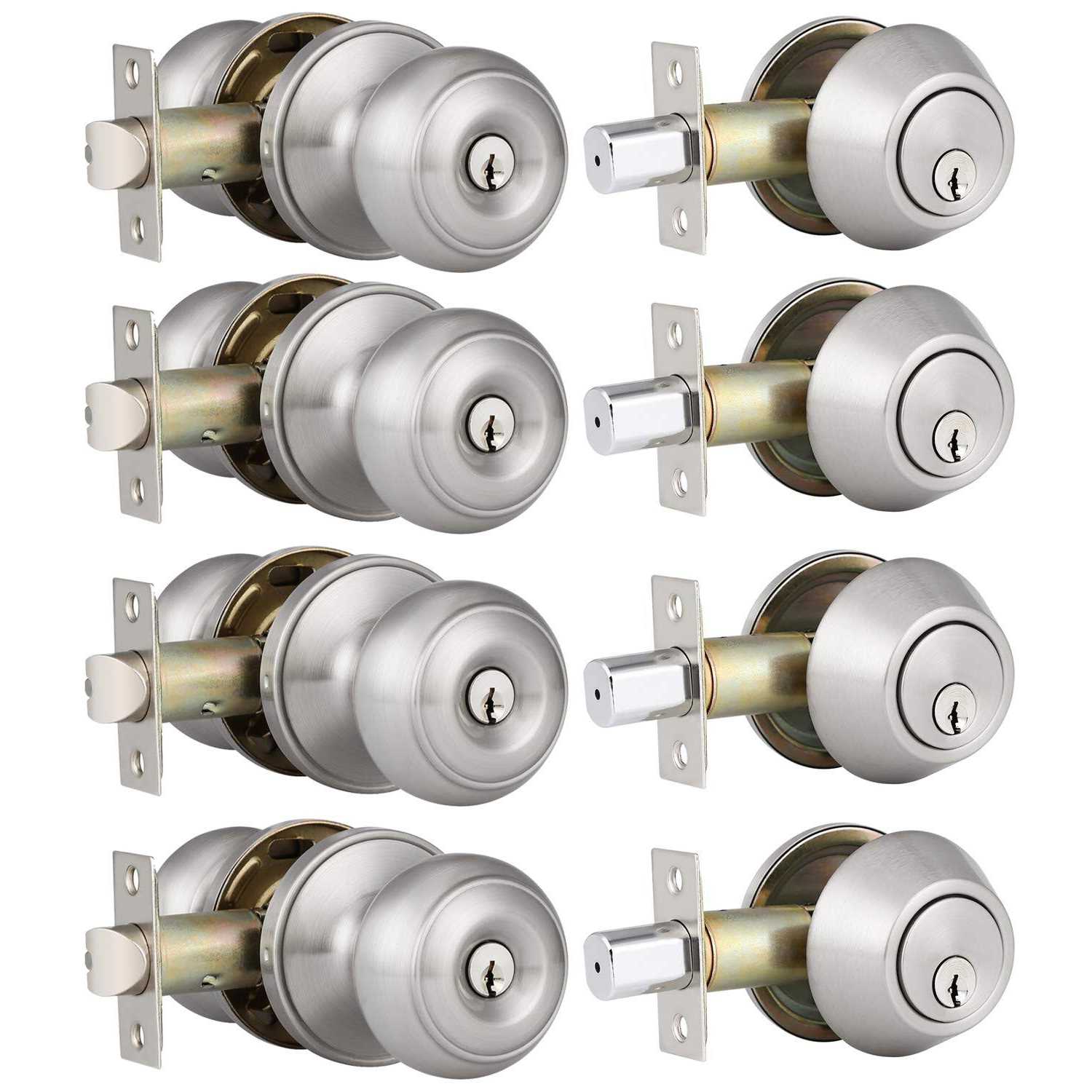 4 Set Keyed Entry Door Knob and Single Cylinder Deadbolt Combination Set, Door Lockset for Home Entry Doors, Bedroom, Storeroom, Keyed Alike, Satin Nickel [PRODUCT FEATURES] Keyed alike entry door knob and deadbolt set(all locks can be opened with one key), single cylinder deadbolt(keyed outside and turn button inside); Made from stainless steel; Door knob set in Satin Nickel. [WIDE APPLICATION] For use on exterior doors where keyed entry and security is needed. Designed to complement modern contemporary style interior and exterior doors for commercial and residential applications. [ADJUSTABLE LATCH] Adjustable latch 2-3/8″or 2-3/4″(60mm-70mm); Fit standard door thickness: 1-3/8″to 1-3/4″(35mm- 45mm). [EASY INSTALLATION] Install your door lock set in a flash. All you need is a door and a tool set! No need for professional door fitters, you can do it yourself! [MODERN DESIGN DOOR LOCKSET] To enhance the look of your home – upgrade any room or suite your entire home, includes a reversible handle that makes it perfect for fitting left or right handed doors.