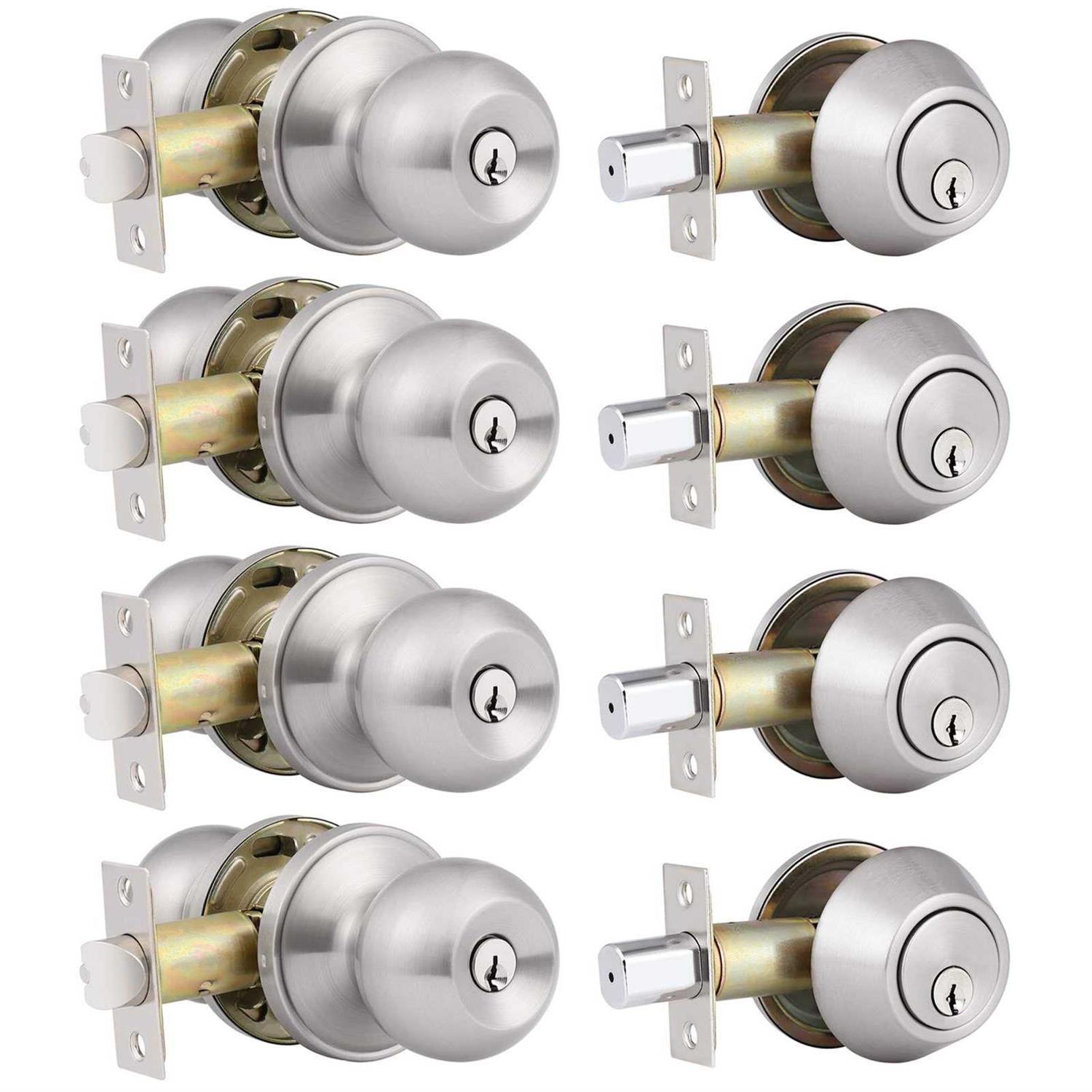 Home Improvement Direct 4 Pack Keyed Alike Entry Door Knobs and Single Cylinder Deadbolt Lock Combo Set Security for Entrance An
