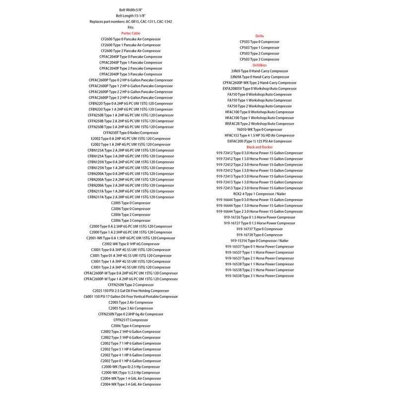 Homhelar AC-0815 Air Compressor Belt for Craftsman replaces Part Numbers CAC-1311, CAC-1342