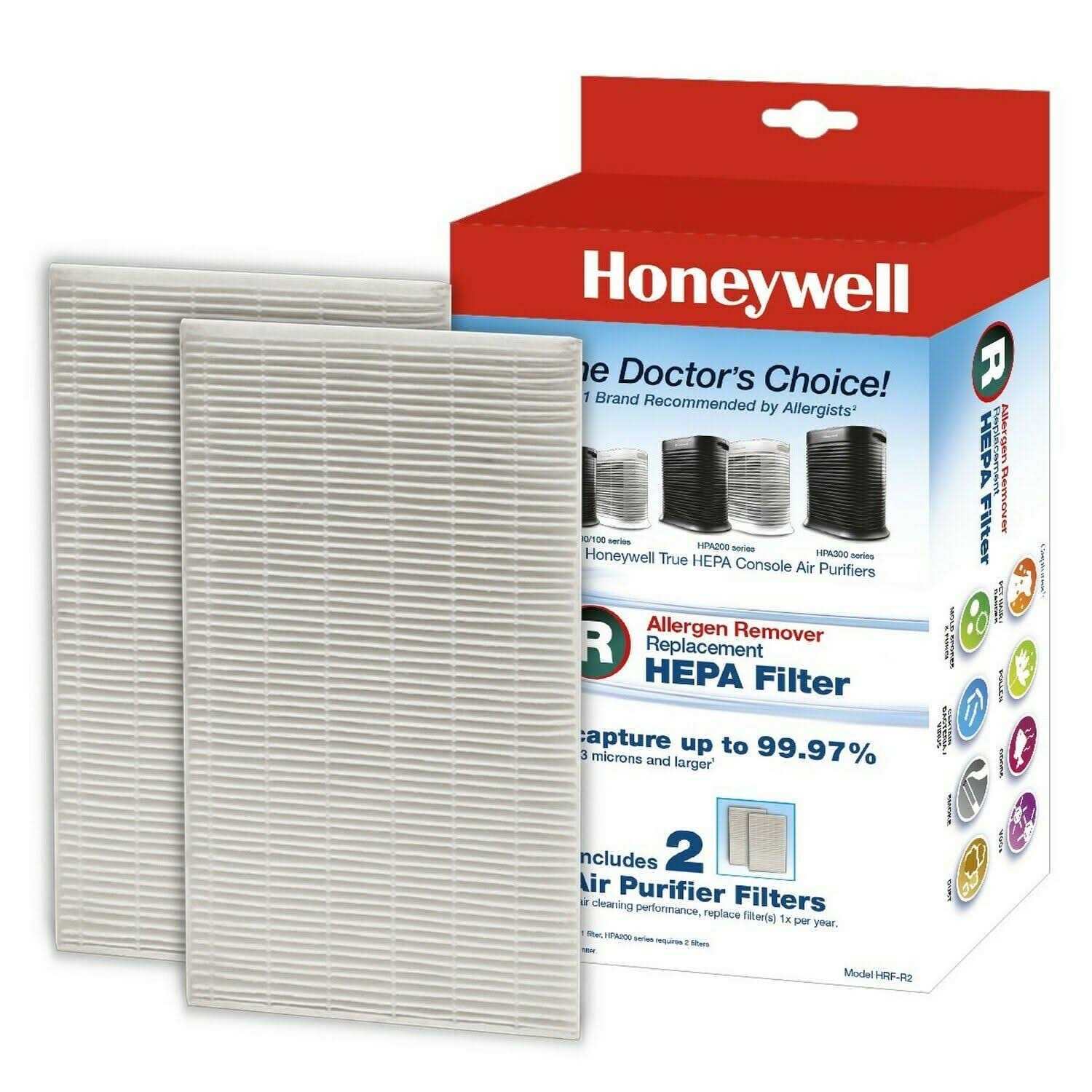 The Honeywell HRF-R2 True HEPA Replacement Filter R is fully capable of capturing an astonishing 99.97% of airborne particles at 0.3 microns from any air passing through the filter. This package includes 2 HRF-R1 Filters and is compatible with the HPA090 series, HPA100 series, HPA200 series, HPA250 series and HPA300 series. It is highly recommended that you change your filter annually for optimal performance. Establish an unrivaled breathing experience for you and your loved ones with Certified Honeywell Filters.