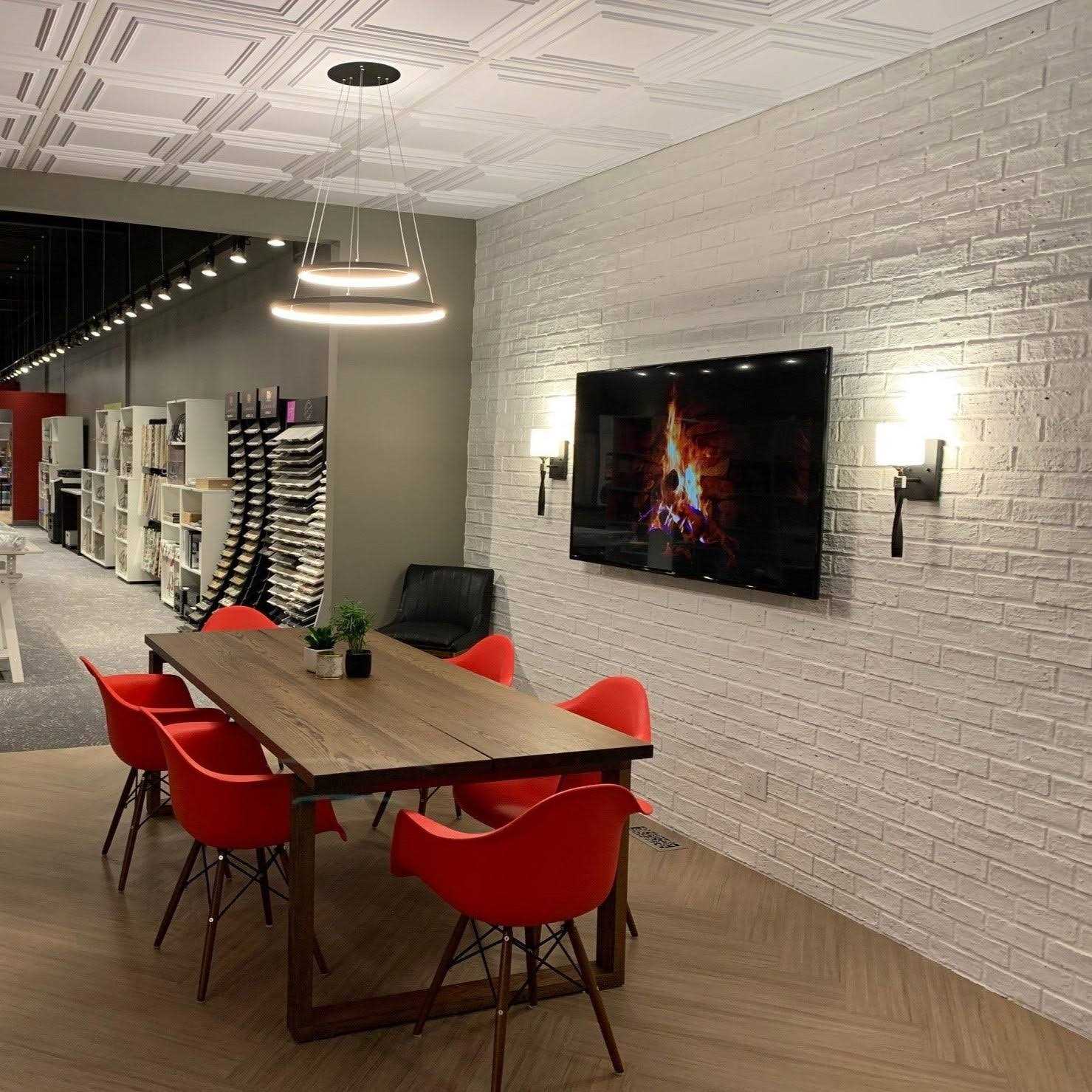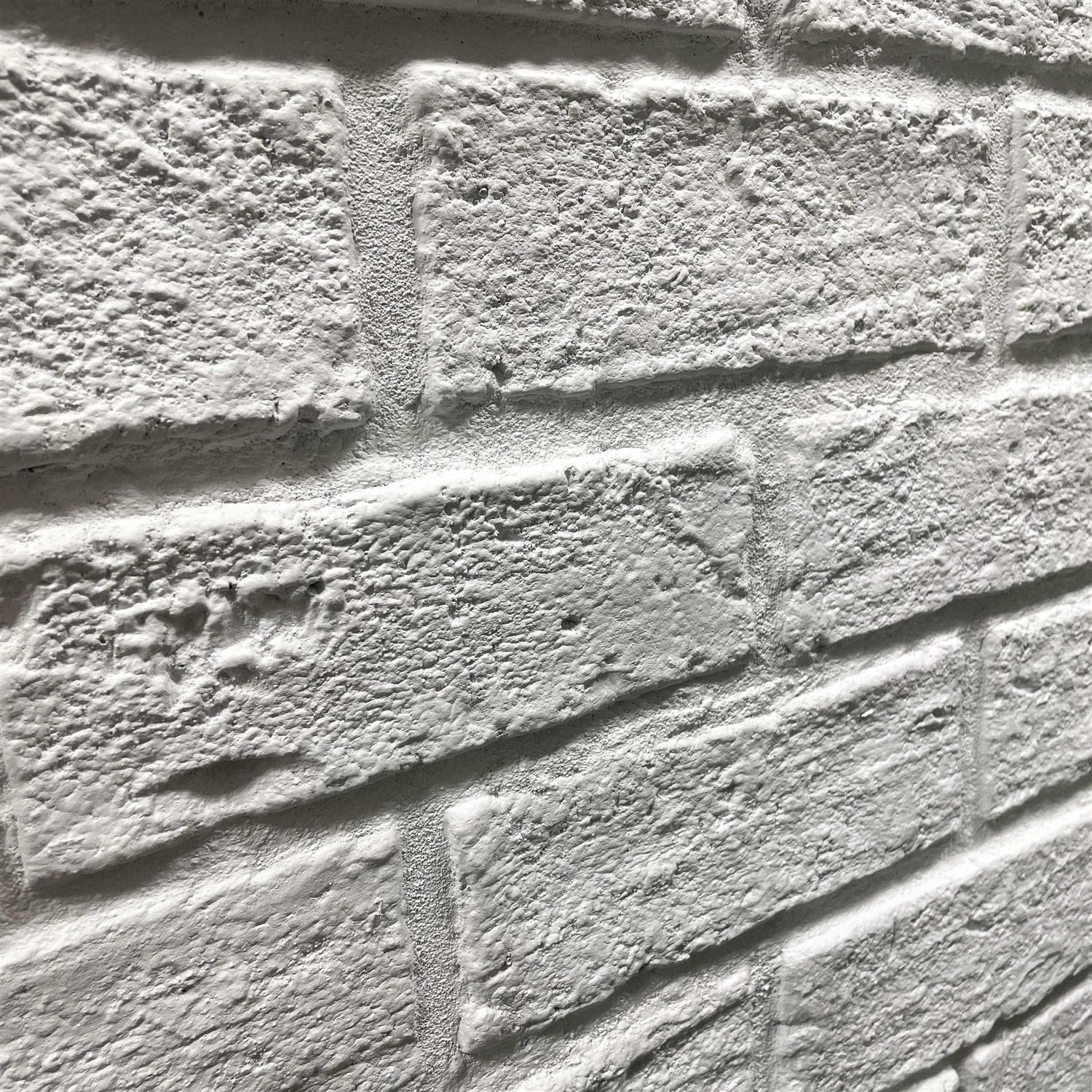 Get the look of real brick with these lightweight, faux brick wall panels in the color Vintage White. Vintage White ClassicBrick panels give your walls subtle brick character and texture. These Vintage White faux brick panels have all the authentic look and feel of brick and will transform your rooms. ClassicBrick panels are made from pouring high-density polyurethane into a mold that was cast from a real brick panel. This process gives ClassicBrick the truly authentic look of real, old-world brick. ClassicBrick panels are available in two different thicknesses, a 1/2” thick & a 1” thick panel. These 1/2″ thick panels are our lightest-weight and most-economical faux brick panel option. They offer a soft brick texture since the grout lines are not as deep as those in our 1” panels. To install the 1/2” panels butt together and a finished look is achieved by running caulking along all horizontal & vertical seams & to cover any screw heads. These panels are extremely lightweight and are simply screwed onto the wall. No need for intense labor or reinforcement of walls like with typical brick wall! Panels are cut with a normal wood saw blade. All that is required for install are a few simple tools and a few hours. However, due to differences in computer monitors, there may be variations in color between the actual product and your screen. It is always recommended to order a sample to confirm exact coloration.