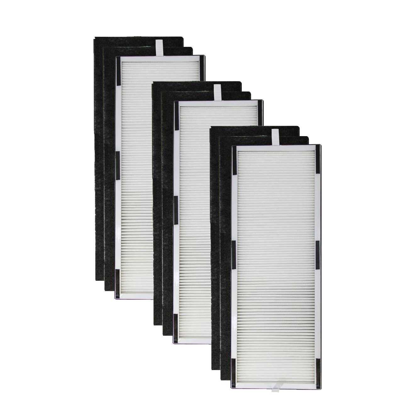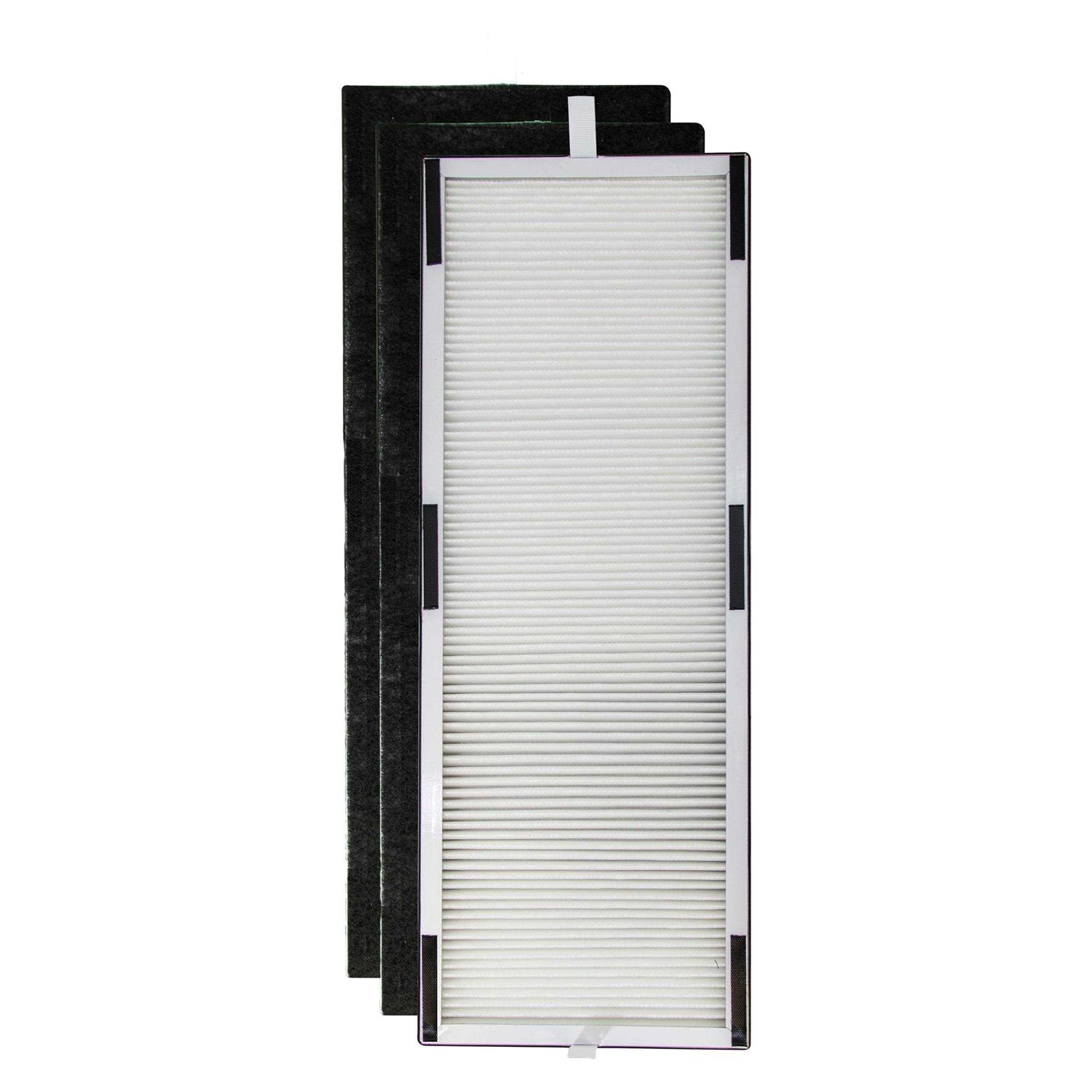 Features a Coconut Carbon pre-filter which neutralizes household odors from cooking, cleaning, smoking, and pets. The pre-filter also captures larger particles before they reach the HEPA filter which extends the life of the HEPA filter. The True HEPA filter removes 99.9% of airborne particles as small as 0.3 microns including smoke, dust, pollen, pet hair and dander, mold spores, and dust mite debris. It is recommended to replace the HEPA filter every 6 months and the pre-filter every 3 months for maximum efficiency, or more often depending on air quality and environmental factors. Package contains (1) one replacement HEPA filter and (2) two replacement pre-filters.