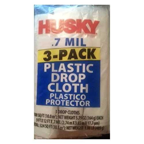 Husky 0.7 Mil Plastic Drop Cloths are ideal for protecting walls and ceilings during new construction or remodel projects. Use to keep any area free from paint and dust. Also prevents seepage and allows for quick and easy clean-up after projects are complete. Can also be used as a temporary drape or cover. This plastic drop cloth is 9 ft by 12 ft and provides up to 108 sq ft of coverage. 3 drop cloths per pack.