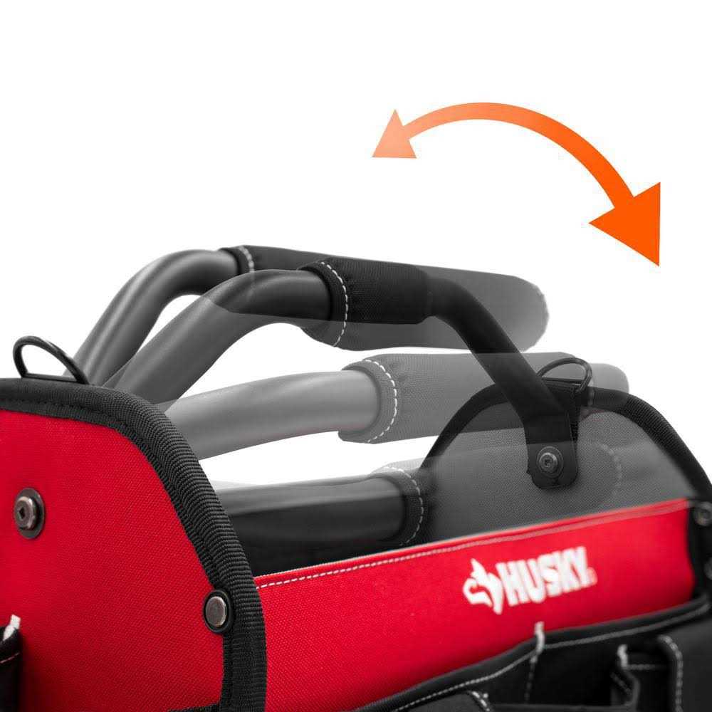 Husky 17 in. Open Top Weather Resistant Tool Tote Bag in Red with 18 Total Pockets and Heavy-Duty Rotating Handle, Men’s