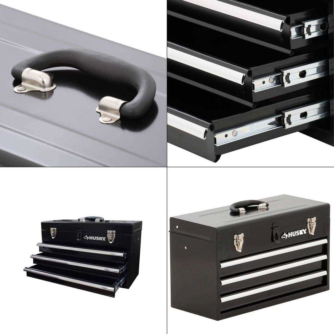 This Husky portable tool chest provides convenient storage & organization for your most commonly used tools. Each drawer has ball bearing slides for smooth, long-lasting operation. The top till contains a tray, which provides additional storage & organization for small tools & parts. Comfortable top carry handle for easy portability.
