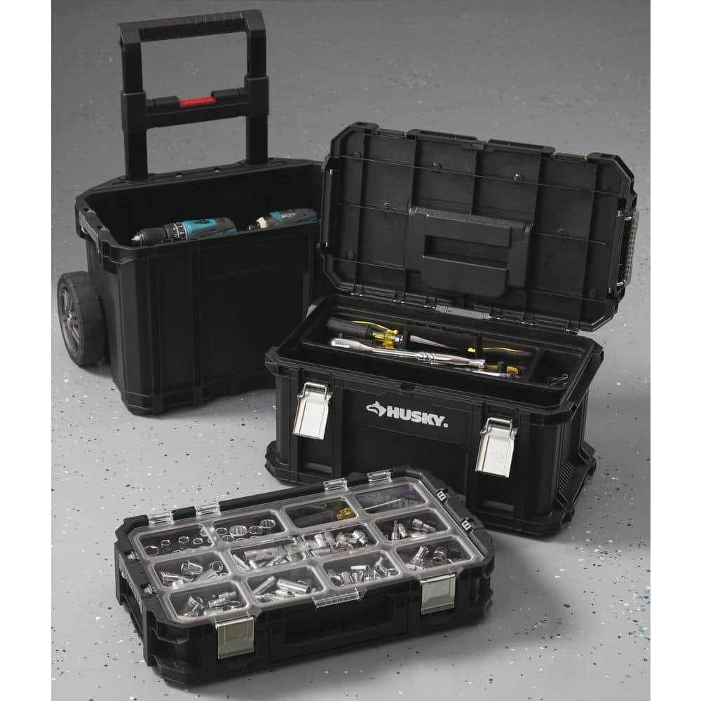 - Husky Connect Rolling System Tool Box features an interconnecting system allowing you to customize the way you transport your tools and accessories.
