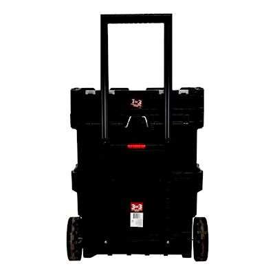 The Husky 22 Connect System Rolling Cart features an interconnecting system allowing you to customize the way you transport your tools and accessories. The system features 3-Pieces, a rolling cart, toolbox and small parts organizer. The rolling cart base is large enough for hauling power tools and features 7 rolling wheels and strong telescoping handle. The mid tool box is 22 wide and features a flat lid surface to double as a work surface. The deep pro organizer features 12 removable bins.