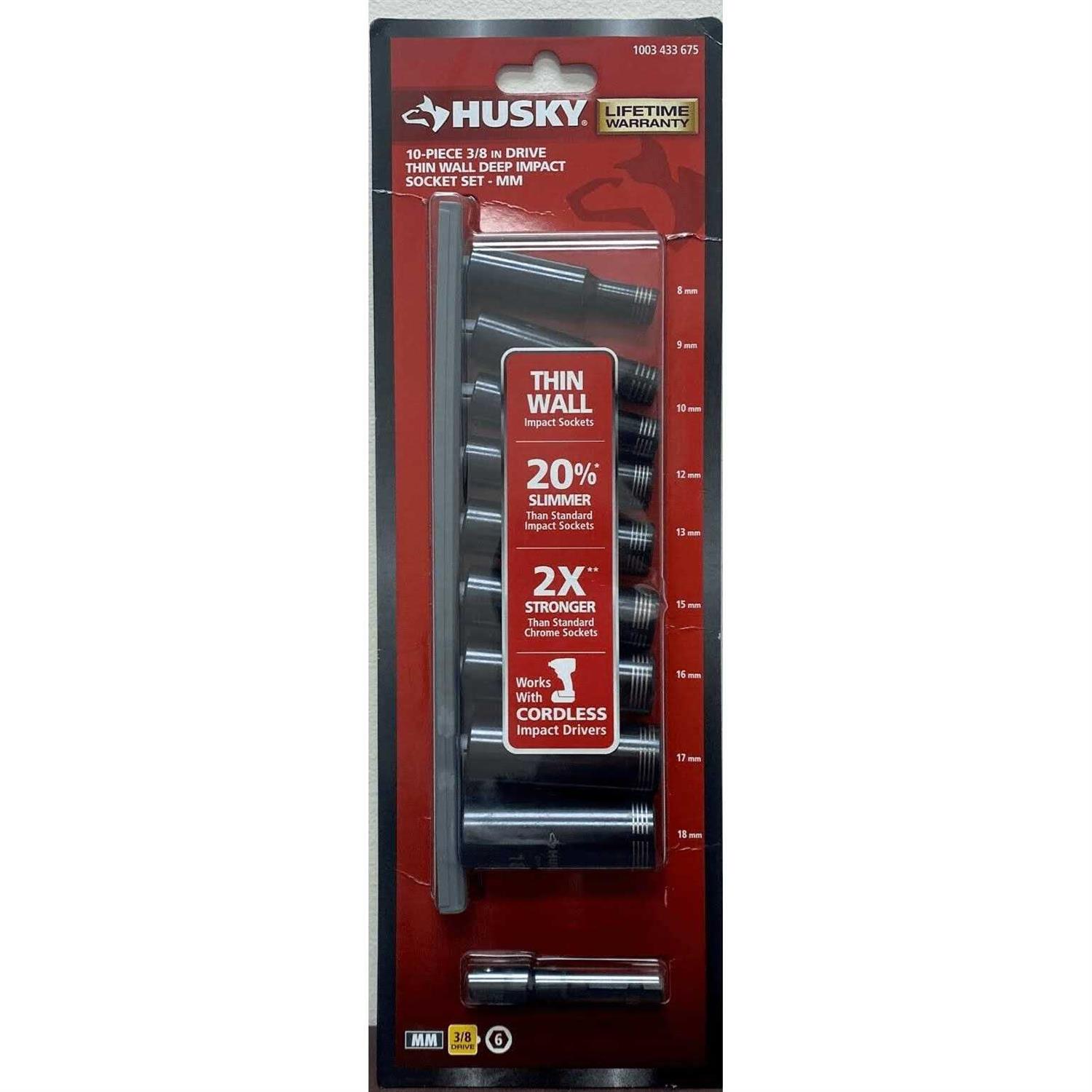Husky 3/8 in. Drive Thin Wall Deep Impact Socket Set mm (10-Piece)