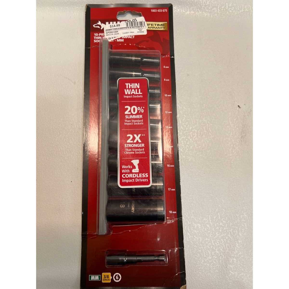 The Husky 3/8 in. drive Thin Wall Impact socket set brings the strength of an impact rated socket with the thin profile of a chrome socket. These thin wall sockets are up to 2-times stronger than standard chrome sockets and 20% slimmer than impact sockets. The 100% black oxide coating provides maximum corrosion resistance, with Hi-vis laser markings for easy identification. This thin wall impact socket set can be used with a standard ratchet or with your cordless impact tools, removing the need for 2 sets of sockets.