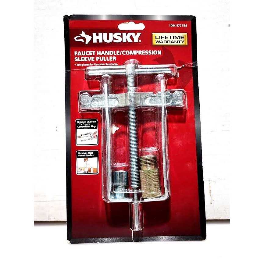 Removes seized faucet handles and 1/2 in. compression sleeves Zinc-coated for corrosion resistance The Husky duel use Compression Sleeve and Faucet Handle puller offers a reliable way to remove seized 1/2 in. fittings. With its A3 steel design and zinc coating this is sure to provide you with the leverage you need.