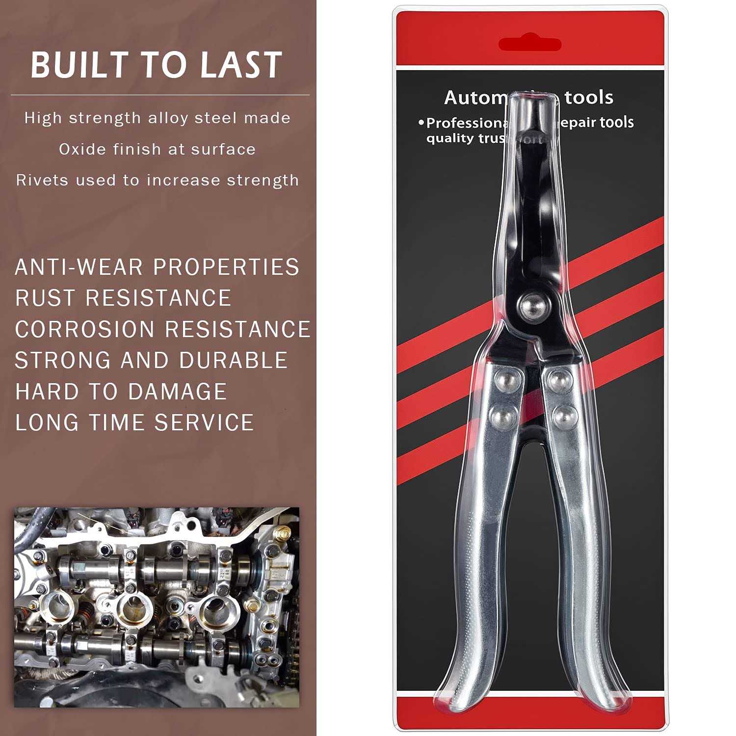 About The Item: Function — This Tool Can Remove Valve Stern Seals On The Overhead Camshaft Engines, Fits For Most Cars In The Market. Also Can Be Used To Remove Springy Hose Clamps. Firmly Grip — The Serrations In The Tip Of The Pliers Nose Provide An Extra Grip To Grasp The Seals On Overhead Camshaft Engines Firmly. Strong Practicability — The Tool Is About Overall 10 Long With A 4 Jaw, The Long Neck Designed To Reach Into Confined Area Of The Seal To Grip It For Removal. Ergonomics Designe.