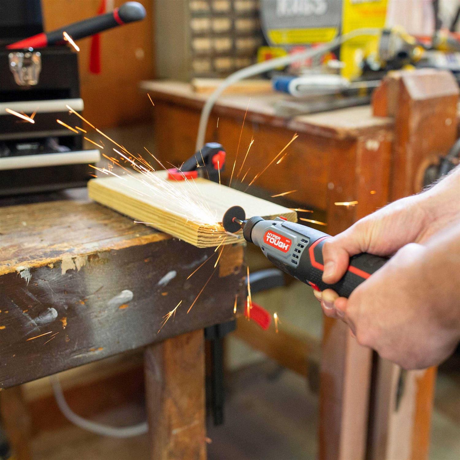The Hyper Tough 12-Volt Lithium-Ion Rotary Tool offers high performance and versatility in a cordless, compact and portable design. This rotary tool includes 40 accessories allowing you to tackle more DIY and home improvement projects with high-precision. This 12V rotary tool has a range of 5,000- 28,000 Rated RPM which gives you the power to cut, grind, and sand most materials with ease. The 7-setting Variable Speed Dial, and ergonomic 360-degree grip zone body provides optimal control for any application. This rotary tool features a battery life indicator helping you to work efficiently.