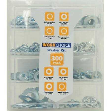 It comes in a large plastic container that is divided into different slots based on size. The case is opened and closed by a simple but secure latch to prevent losing contents. Combine a washer from this kit with a nut to hold screws in place evenly and tightly. This kit contains 300 pieces in a range of sizes for different jobs. Each one is zinc plated for long-lasting durability and strength. This assortment is useful for woodworking, household and mechanical jobs.