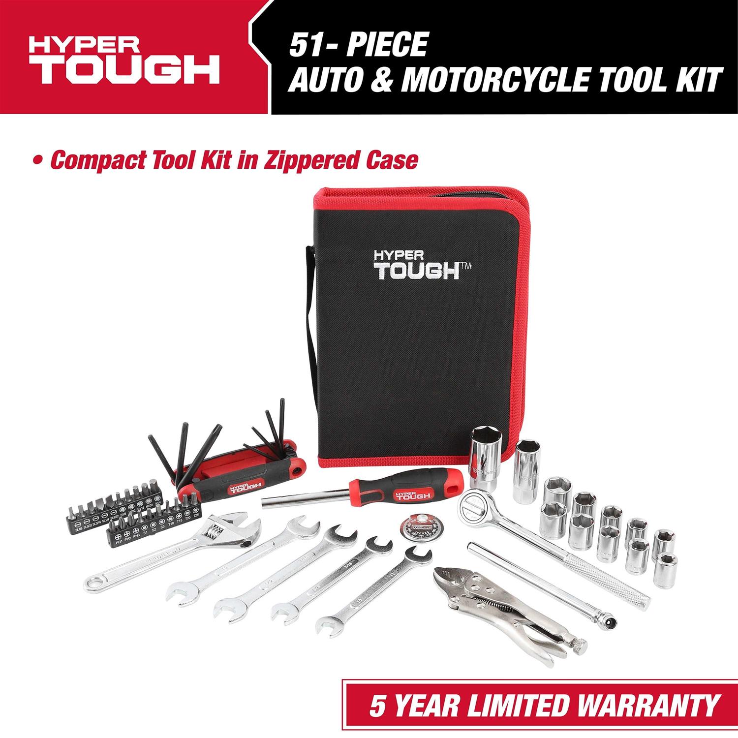Hyper Tough 51-Piece Auto and Motorcycle Mechanic’s Tool Kit