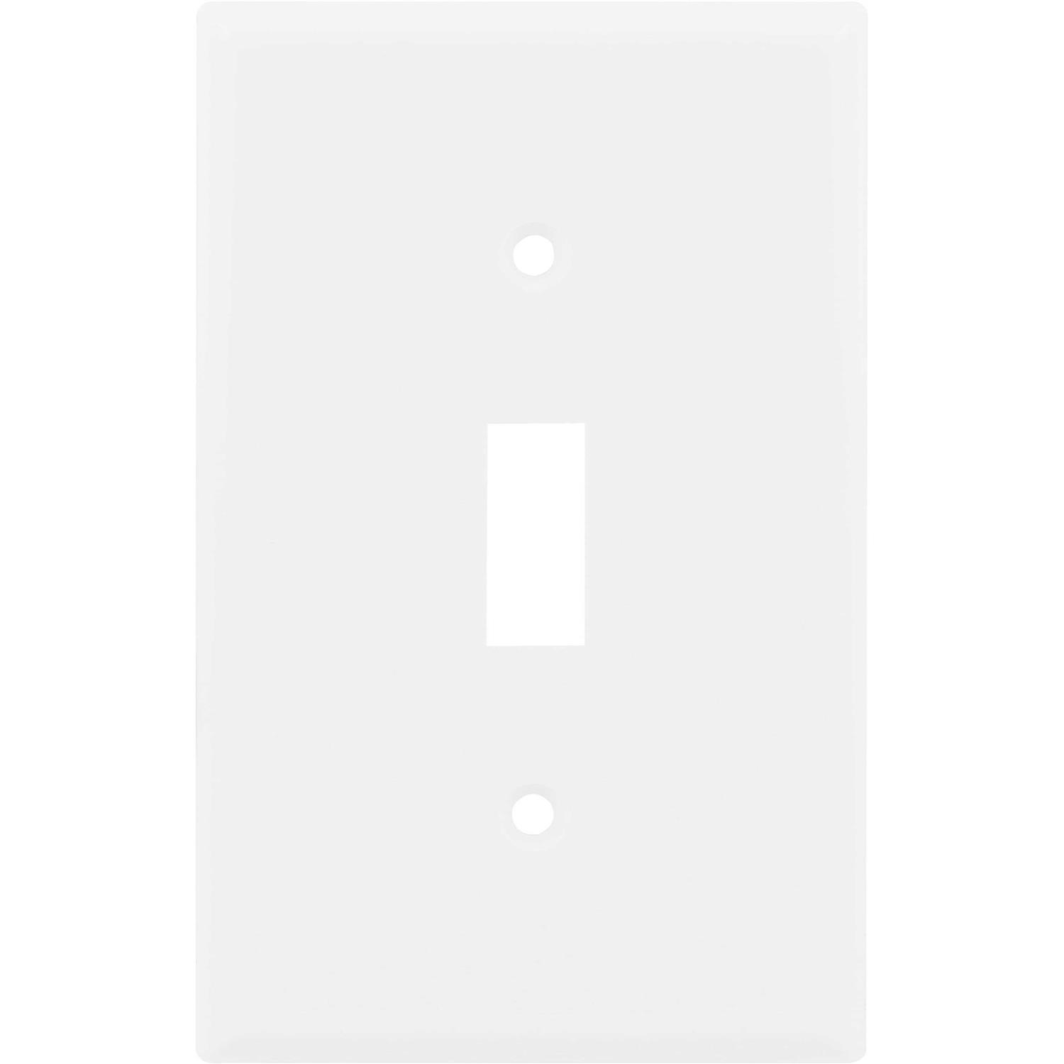 Make the switch to the Hyper Tough Single Switch Oversized Wallplate. The bright white finish of this wallplate matches perfectly to corresponding single toggle wall switches to create a smooth and professional look to your outlets. These wall plates are the perfect finishing touch to a new construction or an easy way to revamp or repair an existing wall switch. Each wallplate is unbreakable and backed by a UL listing which ensures long-term use and durability. Mounting hardware is included to make installation a breeze. And the larger overall dimensions help hide unsightly blemishes and large wall openings. Give your dcor an instant boost with the Hyper Tough Single Switch Oversized Wallplate.
