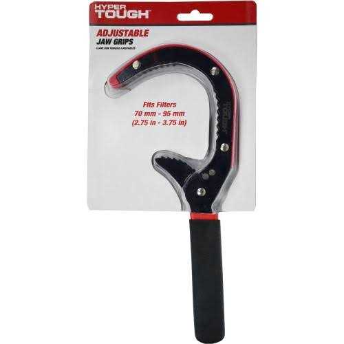 Hyper Tough Adjustable Jaw Grips can be used to remove and install oil filters 70 mm -95 mm in diameter. With adjustable jaw grips and large teeth, this oil filter wrench can be used for gripping even slippery and oil-covered surfaces. It features a three-position slip joint design that not only ensures a firm grip but also adjusts to varying filter sizes. It comes with a long handle with a soft, non-slip grip for convenient handling and easy reach to tight places where regular oil filter wrenches cannot reach.