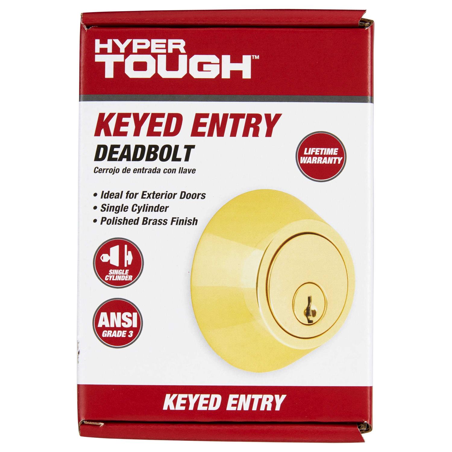 Hyper Tough Keyed Entry Single Cylinder Deadbolt, Polished Brass Finish