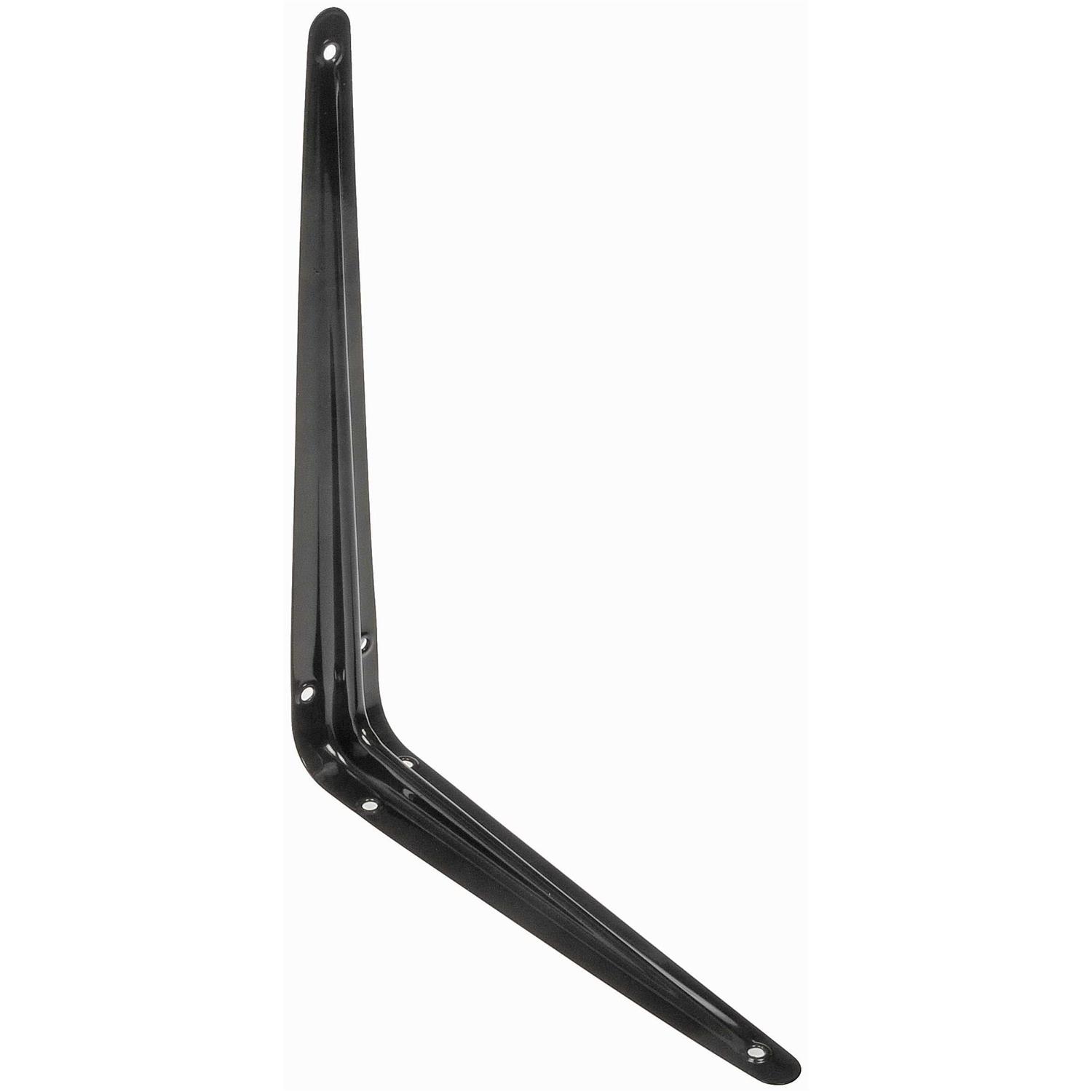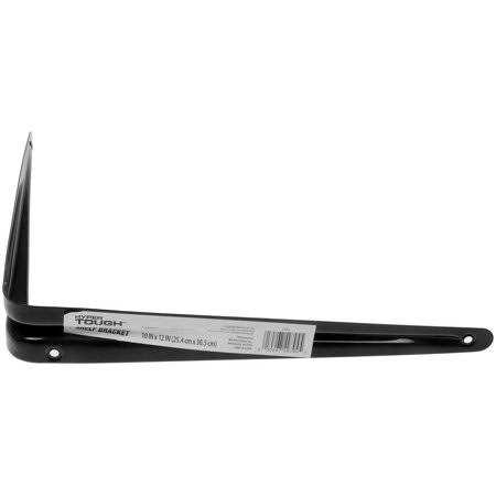 This 10 inch x 12 inch shelf bracket is all you need to add some larger, more heavy-duty shelving to any room in your home. These brackets will support shelving for handy storage or decorating and display of favorite items. The all-black sleek design is sure to fit right in with any decor, and the 10 inch x 12 inch sizing is suitable for shelving that matches your decor-even if it is in the garage. Once installed, the sturdy design of this shelf bracket ensures that it will stay securely in place without wavering. Each bracket features six pre-drilled holes for the screws and fasteners that will keep your items safe. Supports up to 50 lbs per bracket and 100 lbs per pair of brackets.
