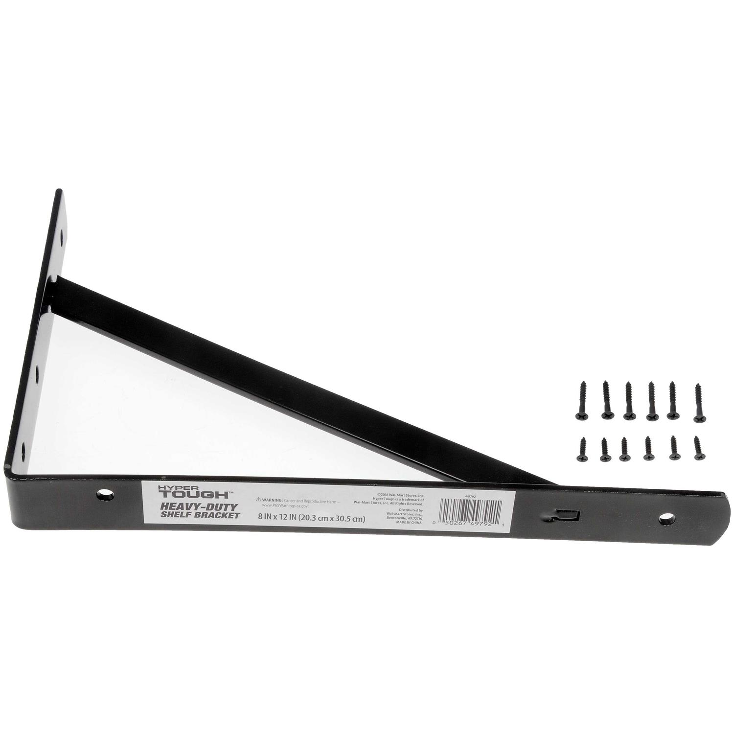Hyper Tough Shelf Bracket Heavy Duty 8 inch x 12 inch Black 4-9792