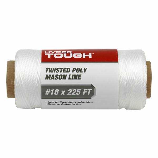 Hyper Tough #18 mason’s line is a twisted rope used to create straight lines and a level surface. It is a heavy duty, mid-stretch string that is perfect for a wide range of indoor and outdoor activities, including fishing, boating, masonry, crafting, gardening, marking, and DIY projects. A mason’s line is necessary when doing these projects because you will not have to pick up the level so many times. The other great aspect of this twine is it will not sag like ordinary twine tends to do. Polypropylene fibers provide a durable, long-lasting line that is naturally resistant to moisture, chemicals, oils, rot, and weather conditions. Do not use in situations where personal safety could be endangered. Never use this product to secure large flat surfaces or objects that could airplane. Misuse could result in serious injury or death.