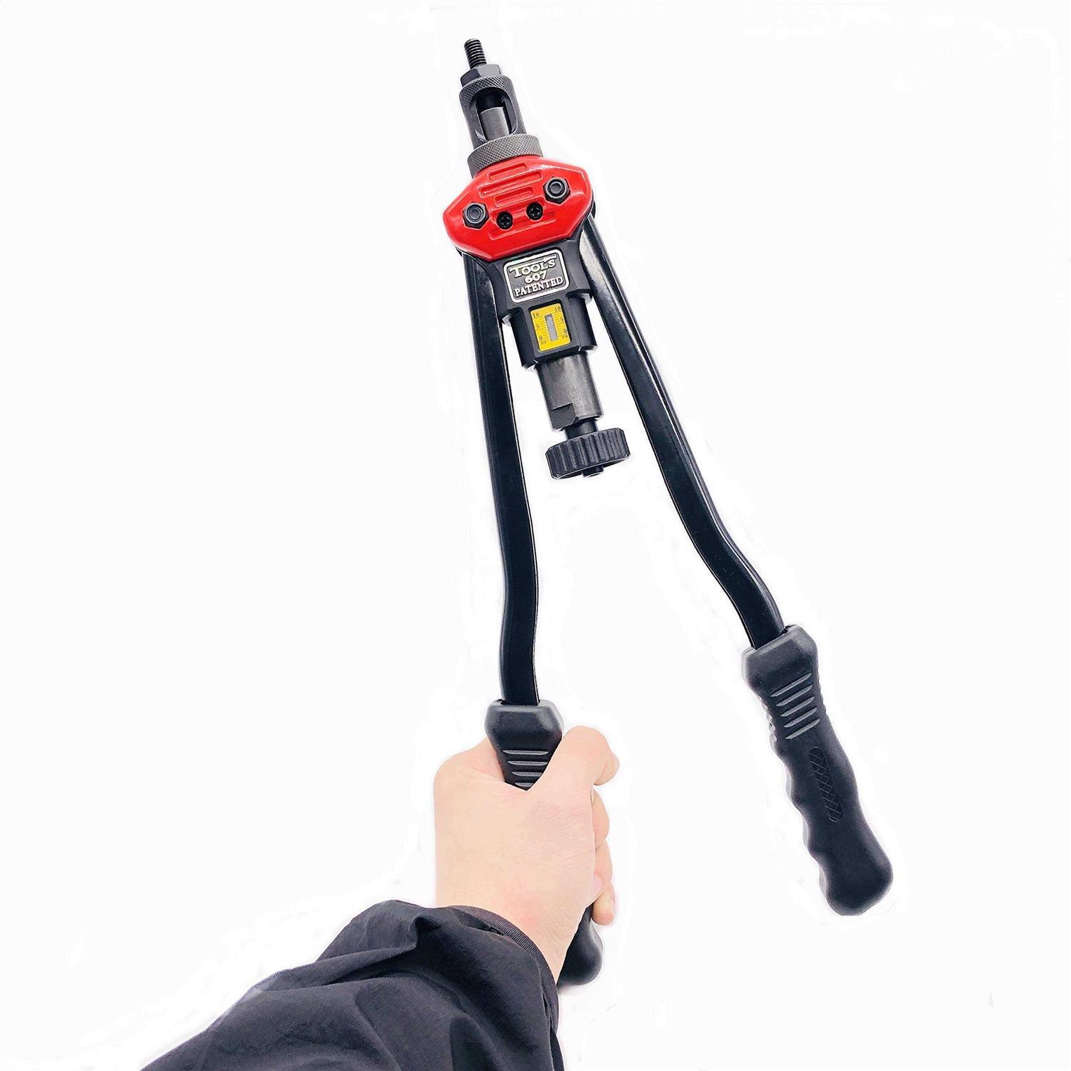 HYWMLY 16″ Hand Rivet Nut Setter Kit Threaded Riveter Professional Long Handle Threaded Insert Tool with 11 Interchangeable Mandrels and 55 Pcs Rivets