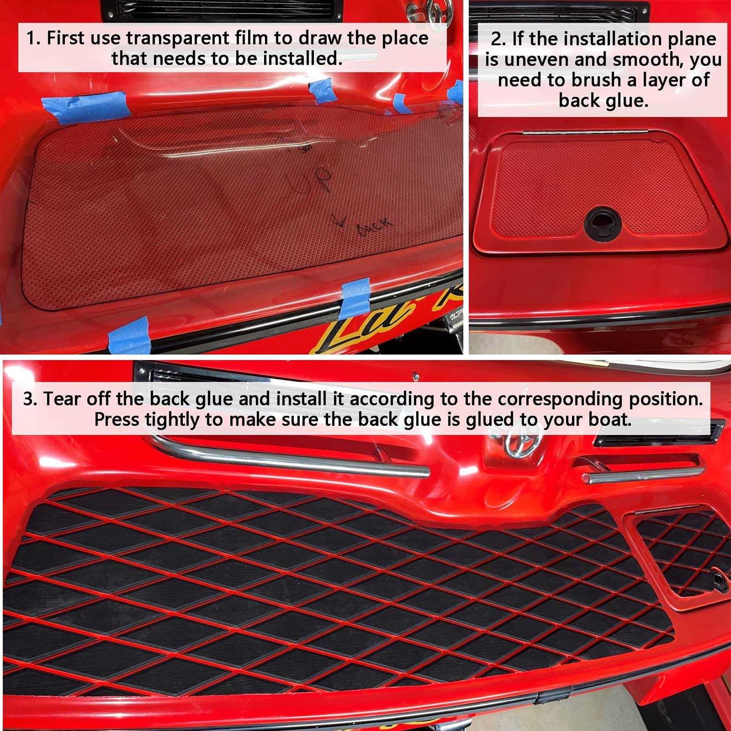 The process and technology have been upgraded to achieve a larger size, and the pattern and texture sizes are exactly the same. Multiple products can be completely spliced together (No splicing errors will occur), suitable for all large and small boats, and the unique diamond shape is more refined. Beautiful. Dimensions: 94″X 44″X28″X16″, 74.5″X28″, thickness: 0.23″ Available in a variety of sizes and colors. Choose a color to decorate and renovate your boat today! Product design: Patented U-shaped groove foam flooring, using professional marine glue (with adhesive backing) to better fit the hull. The double-layer 6 mm thick two-color splicing is a very beautiful design combination and is easy to cut. It can decorate your boat well, the U-groove drainage design prevents slipping, you can walk on it without worrying about slipping, and it can be easily cut into any non-slip or protective hull shape you want to install on your boat. High-quality materials: EVA foam boat deck is made of ethylene-vinyl acetate (foam rubber), which has excellent heat insulation, cold protection, and low-temperature properties, can withstand severe cold and exposure, and has a long service life. Resistant to sea water, grease, acid and alkali, not easy to tear or damaged, safe and durable. It has good shock absorption and buffering properties. Pads, surfboard pads, swim deck platform pads, swimming pool pads, RVs, gardens, fish boxes, etc. All boat types are suitable for installation. Installation instructions: You need to spread and flatten the foam floor one day in advance before using it, at this time you can clean your boat and keep it clean and tidy. br br The boat floor foam has been flattened and easy to cut after being spread overnight. You can draw lines with transparent film on the boat or cut the shape you want with a piece of paper, and then put the transparent film you drew on the foam floor. It will not appear when the product is spread out and flattened. br br The floor should be cleaned before installation. It has strong adhesion on a flat and smooth surface.