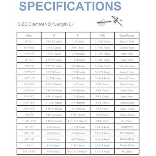 - Diameter: 3/16 inch,Grip Range: 3/4-1 inch.
