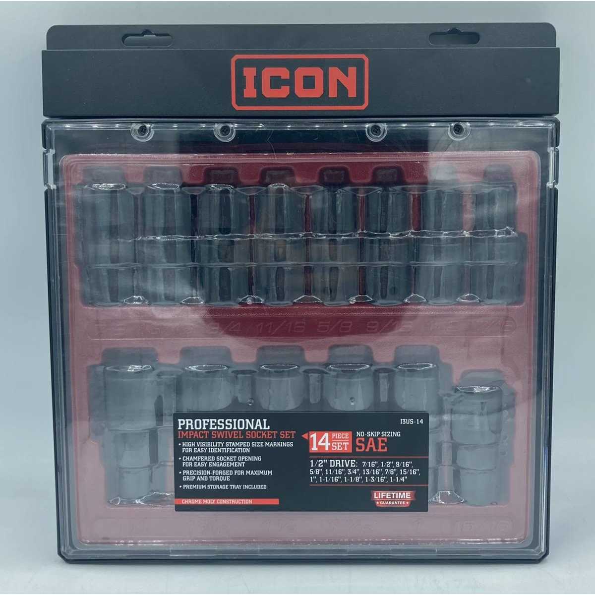 Icon I3us-14 SAE 1/2″ Drive Professional Swivel Socket Set