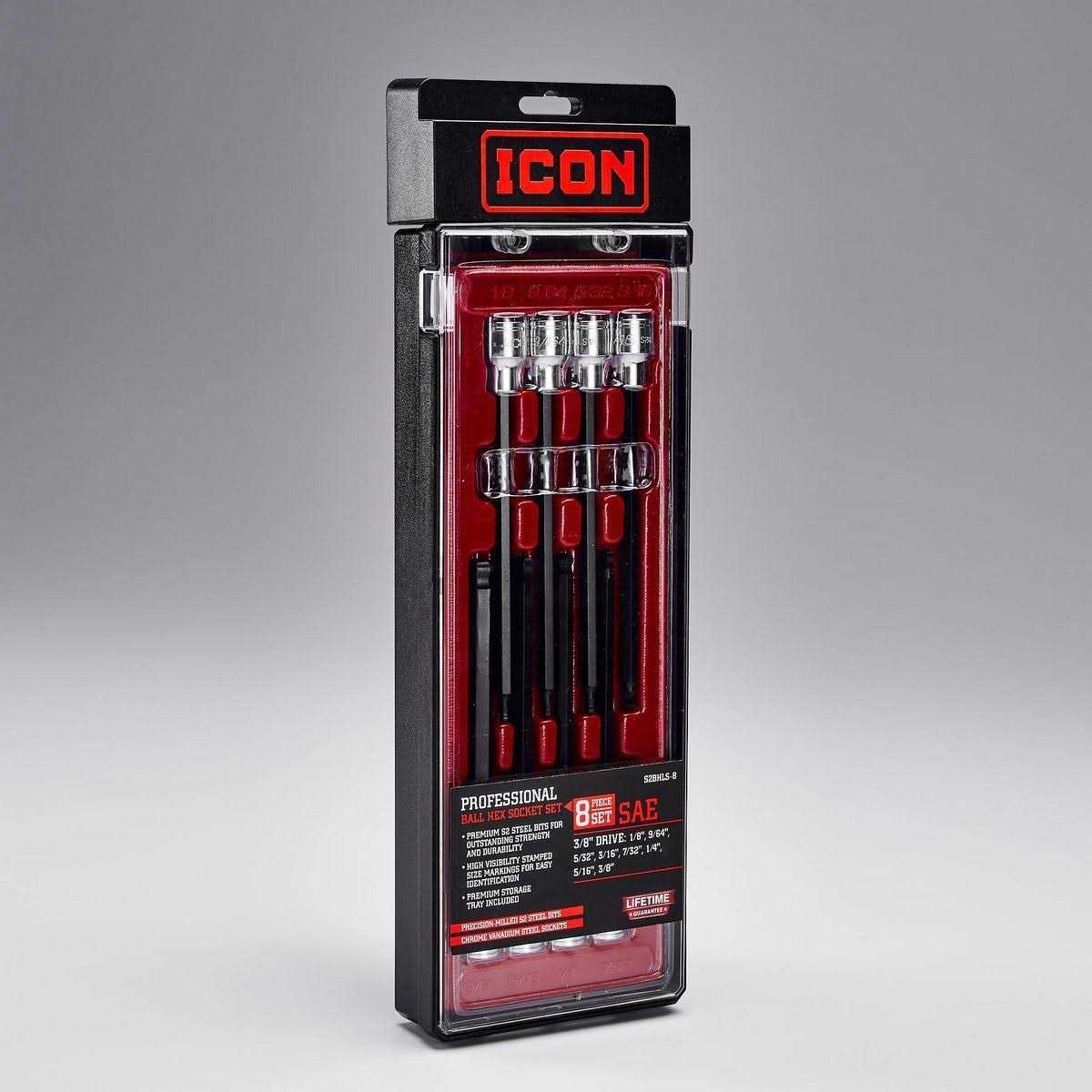 Icon 3/8 in. Drive SAE Professional Long Ball Hex Bit Socket Set
