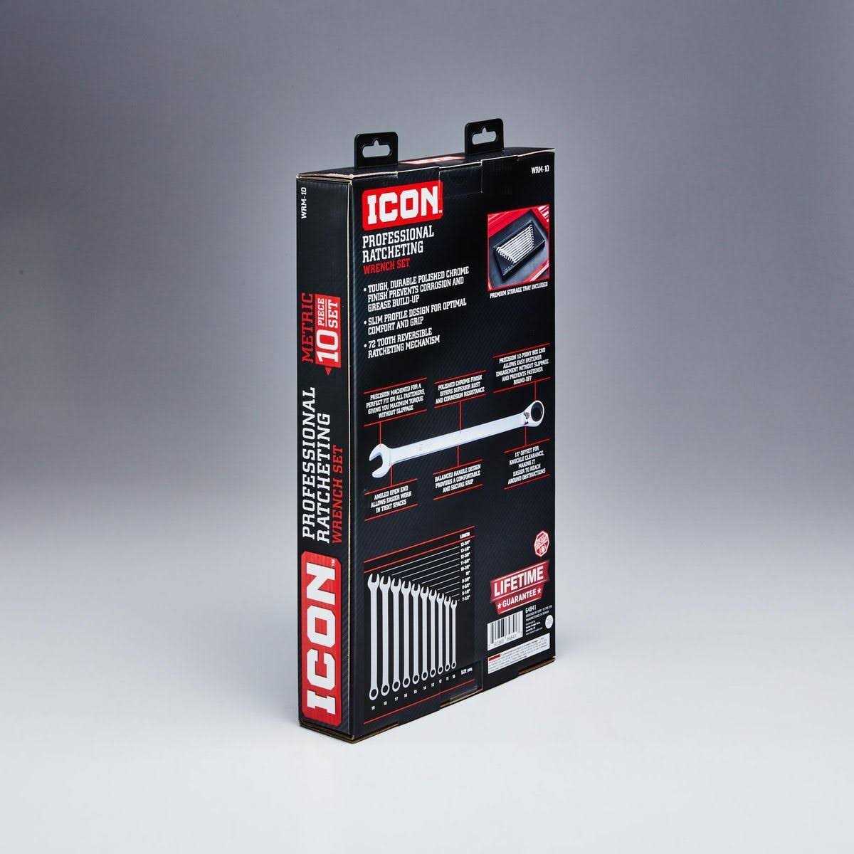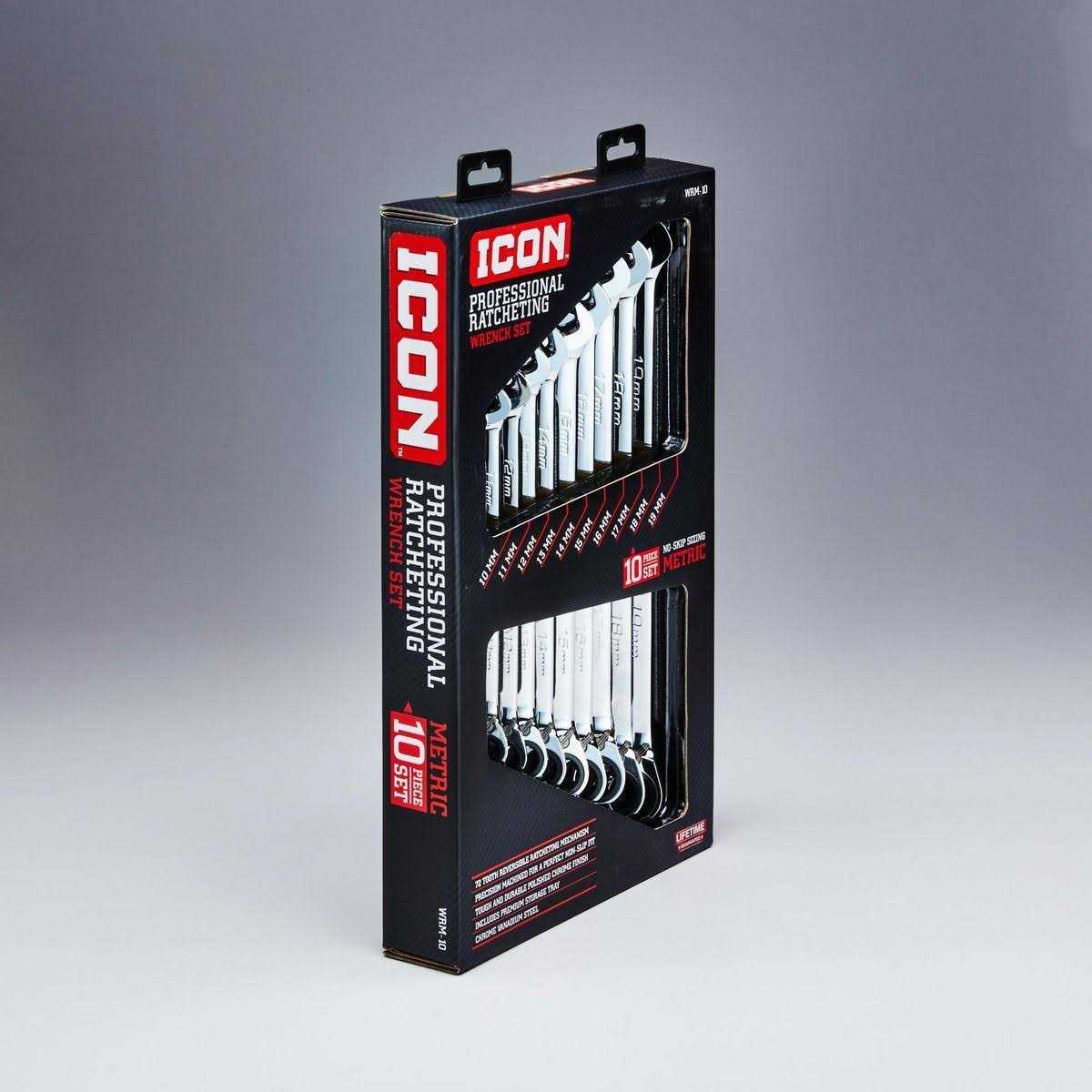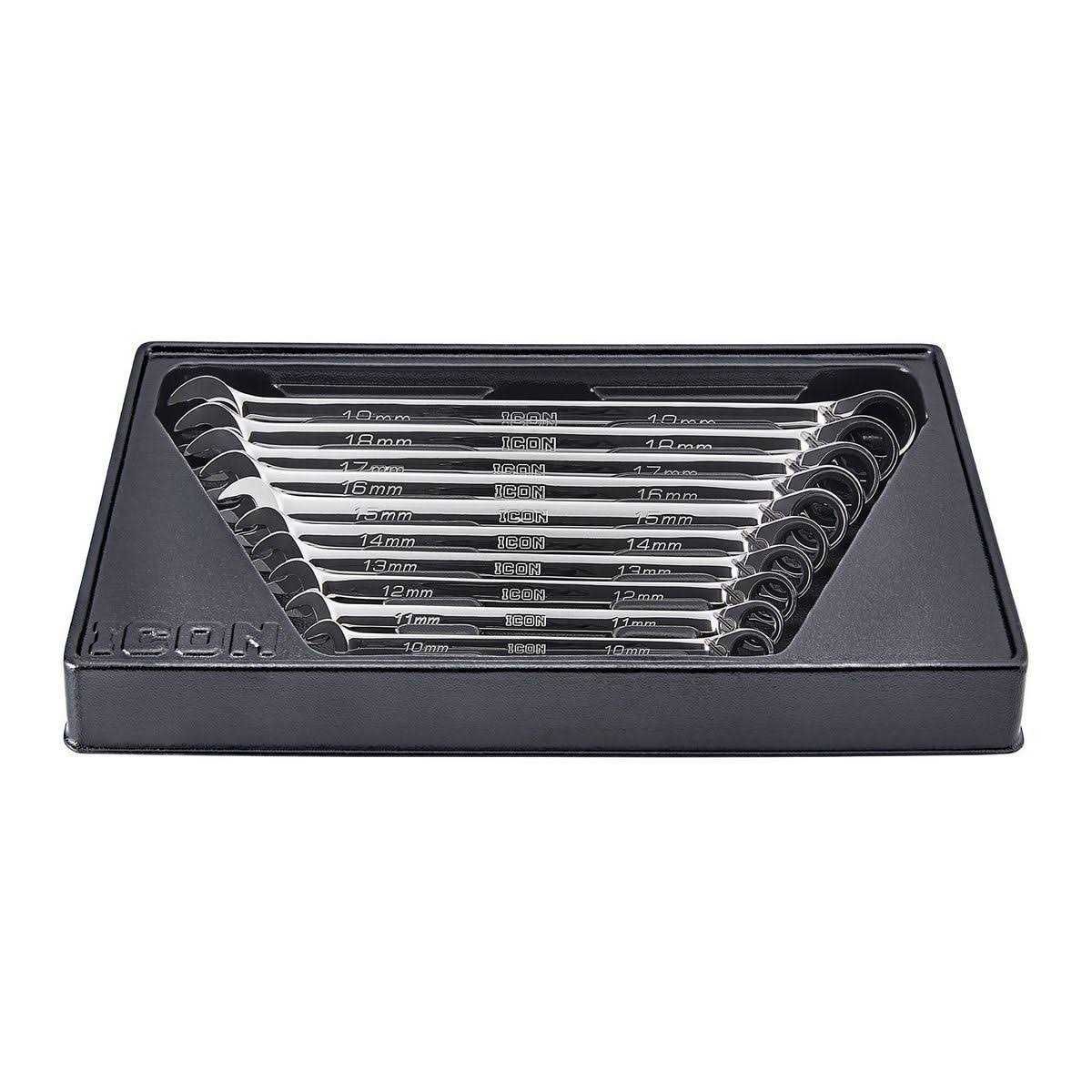 Icon Metric Professional Ratcheting Combination Wrench Set 10 Piece
