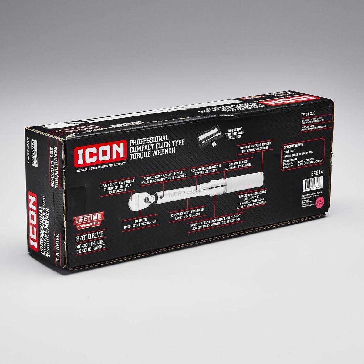Icon Tw38-200 Professional Compact Click Type Torque Wrench 3/8