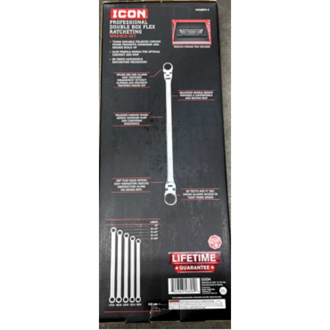 Icon Professional Double Box Flex Ratcheting Wrench 5 Piece 56694