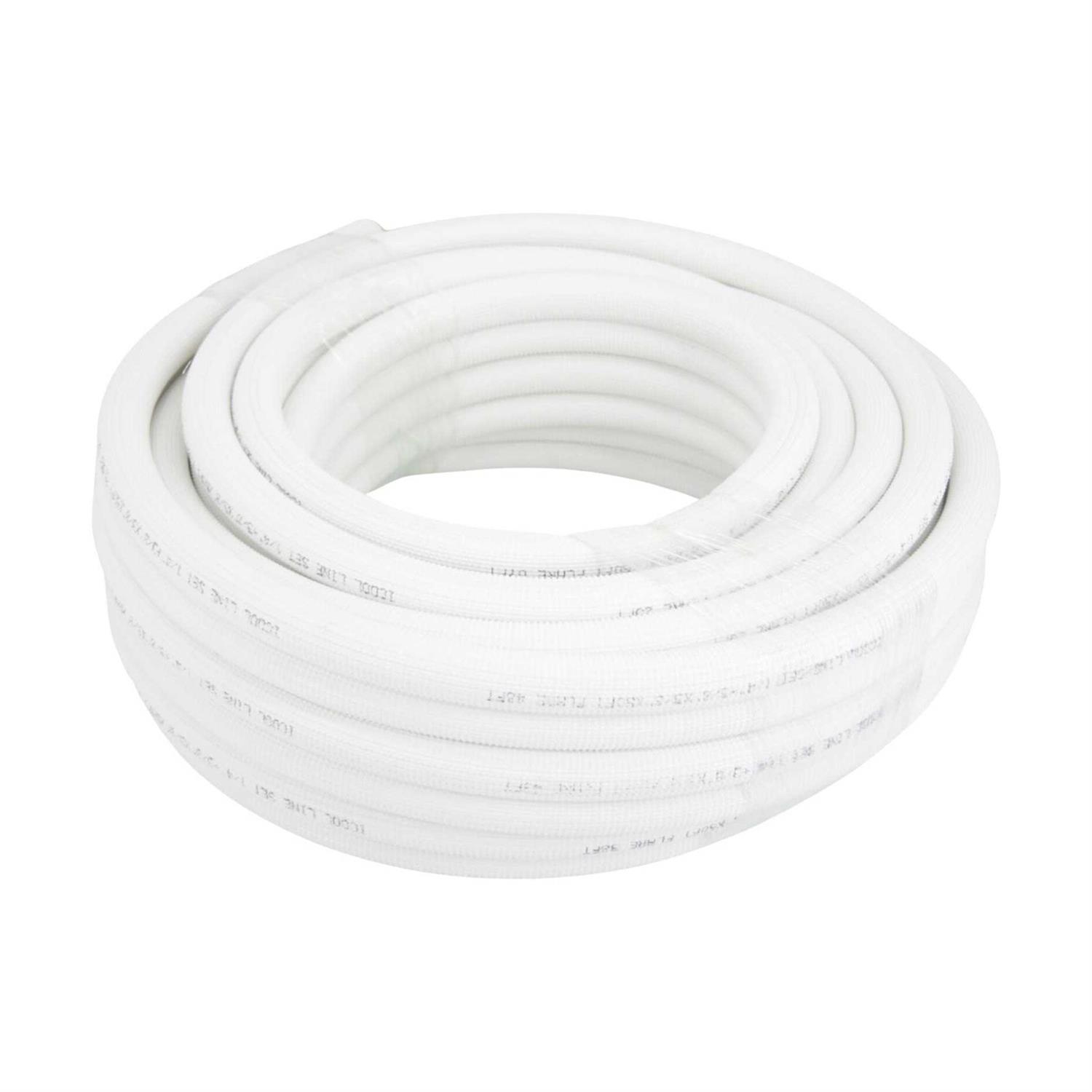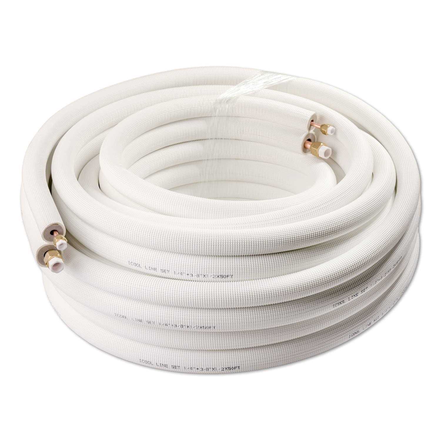 iCOOL 50 ft. Mini Split Line Set, 1/4″ & 3/8″ O.D. Twin Copper pipes, 3/8″ Thickened PE Insulated Coil Copper Line with Nuts