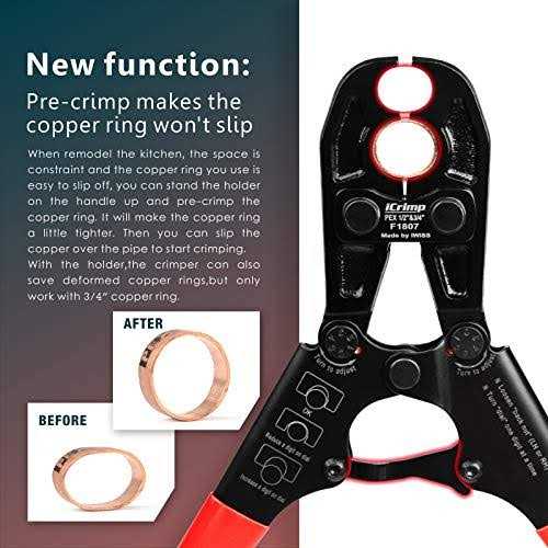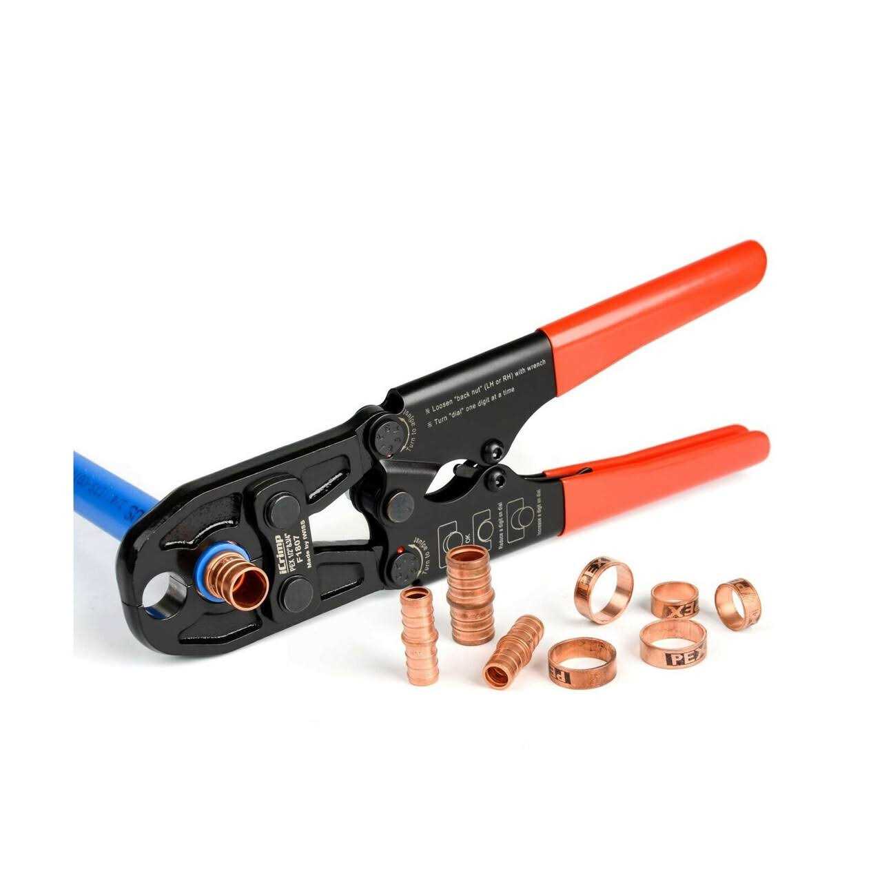 iCrimp 1/2 and 3/4-Inch Combo Pex Pipe Crimping Tool for Copper Ring with Gauge meets ASTM 1807 Standard-manufactured by Iwiss