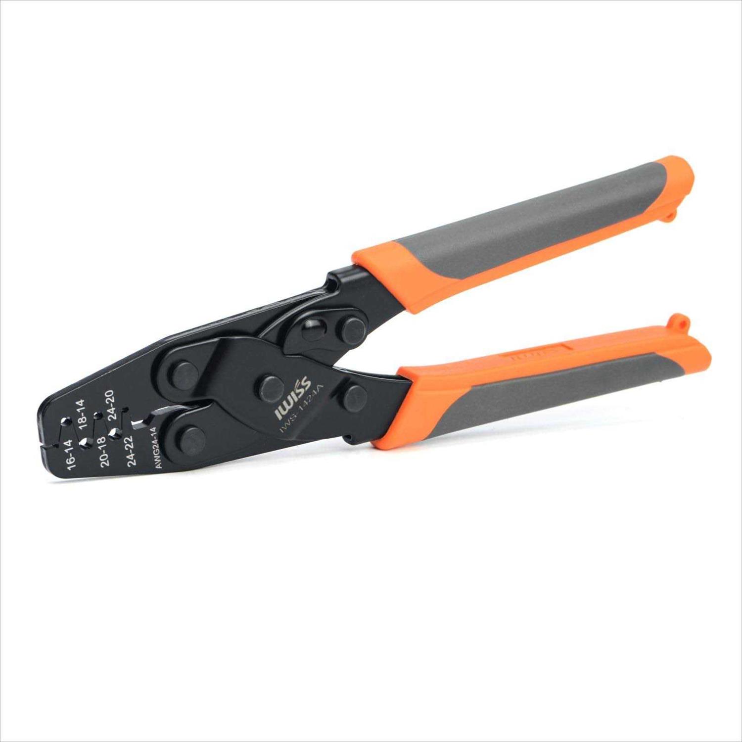 Iwiss Non Insulated Open Barrel Terminal Crimp Tool – Wire Crimper for Molex, Delphi, AMP/Tyco, Harley, PC/Computer