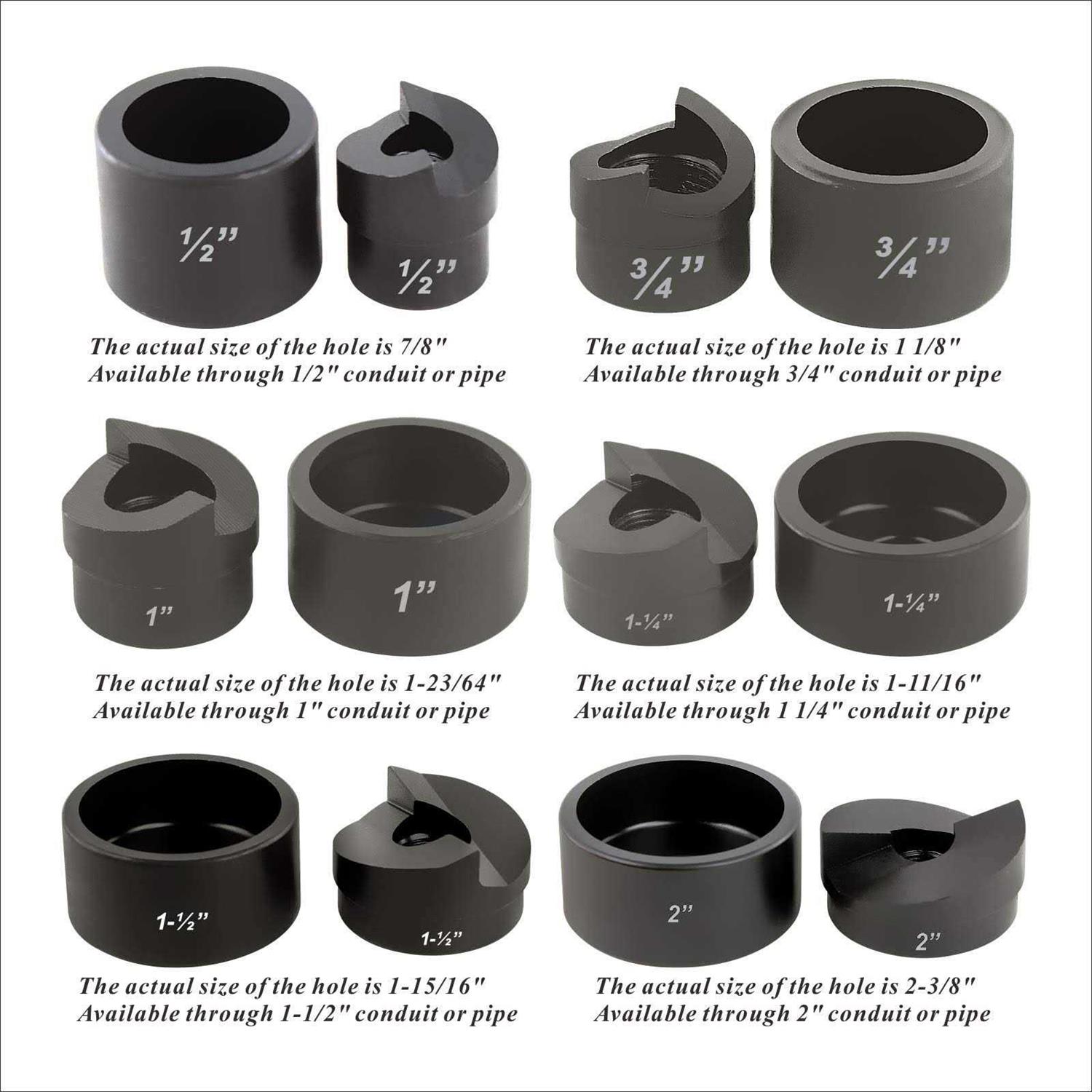 - 【Six Punches】22.5mm / 0.9inch, 28.3mm / 1.1inch, 34.6mm / 1.4inch, 43.2mm / 1.7inch, 49.6mm / 2.0inch, 61.5mm / 2.4 inch.