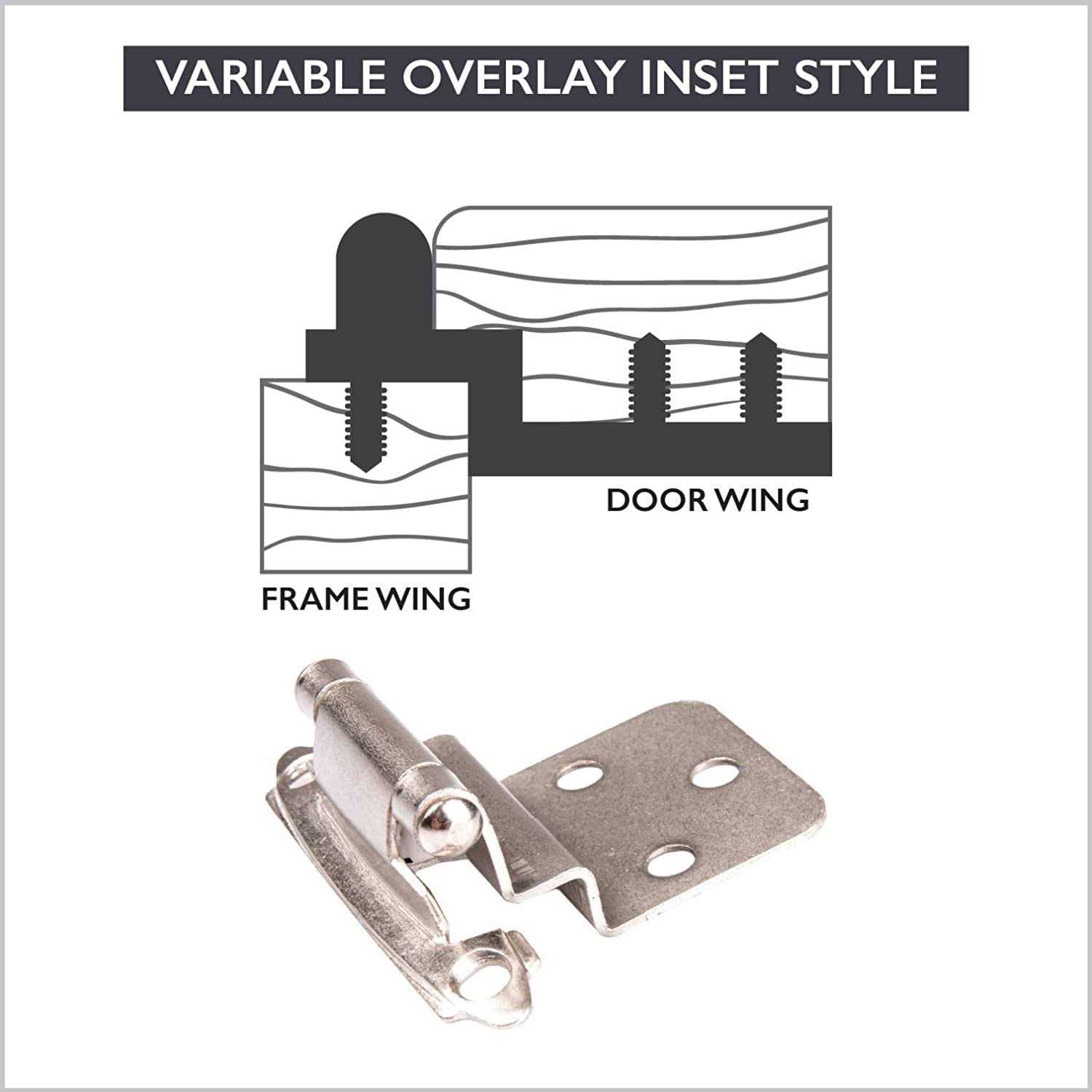 Ilyapa Self Closing Cabinet Hinges Satin Nickel, 50 Pack – 3/8 inch Inset Variable Overlay Kitchen Cabinet Door Hinge Hardware