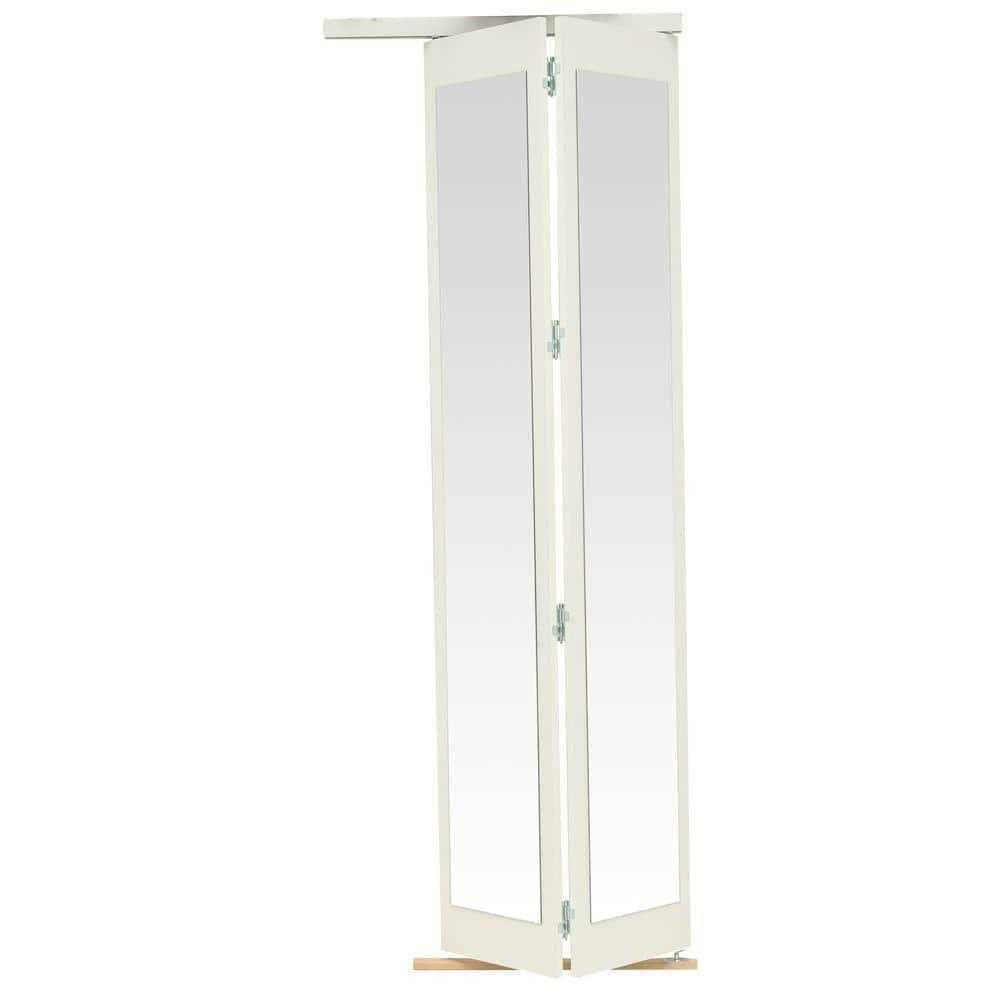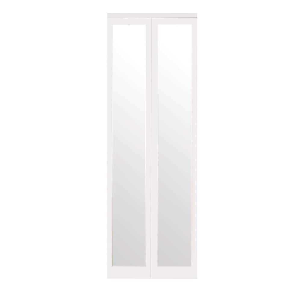 Impact Plus 80 in. Mir-Mel Mirror Solid Core White MDF Full-Lite Interior Closet Wood Bi-Fold Door Trim