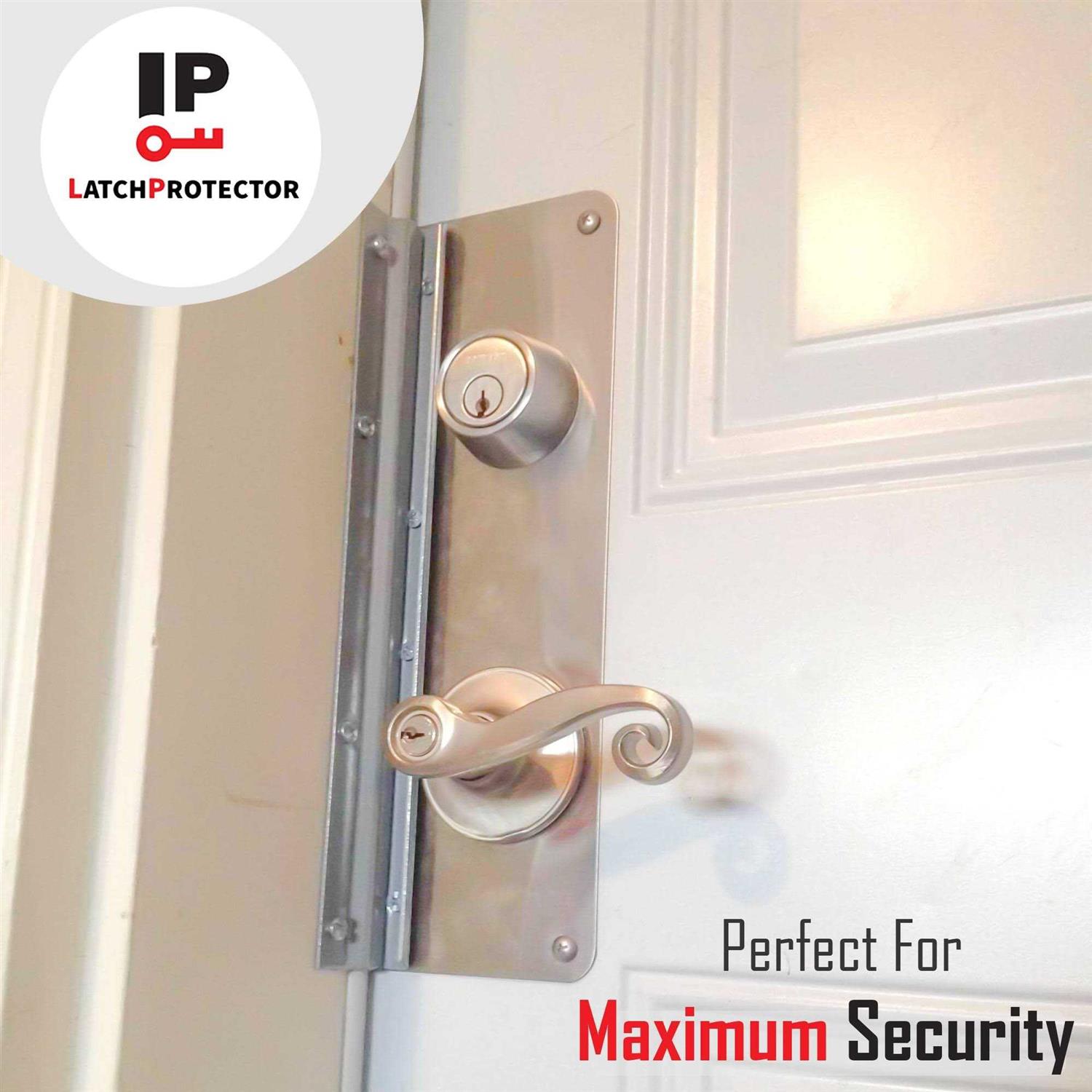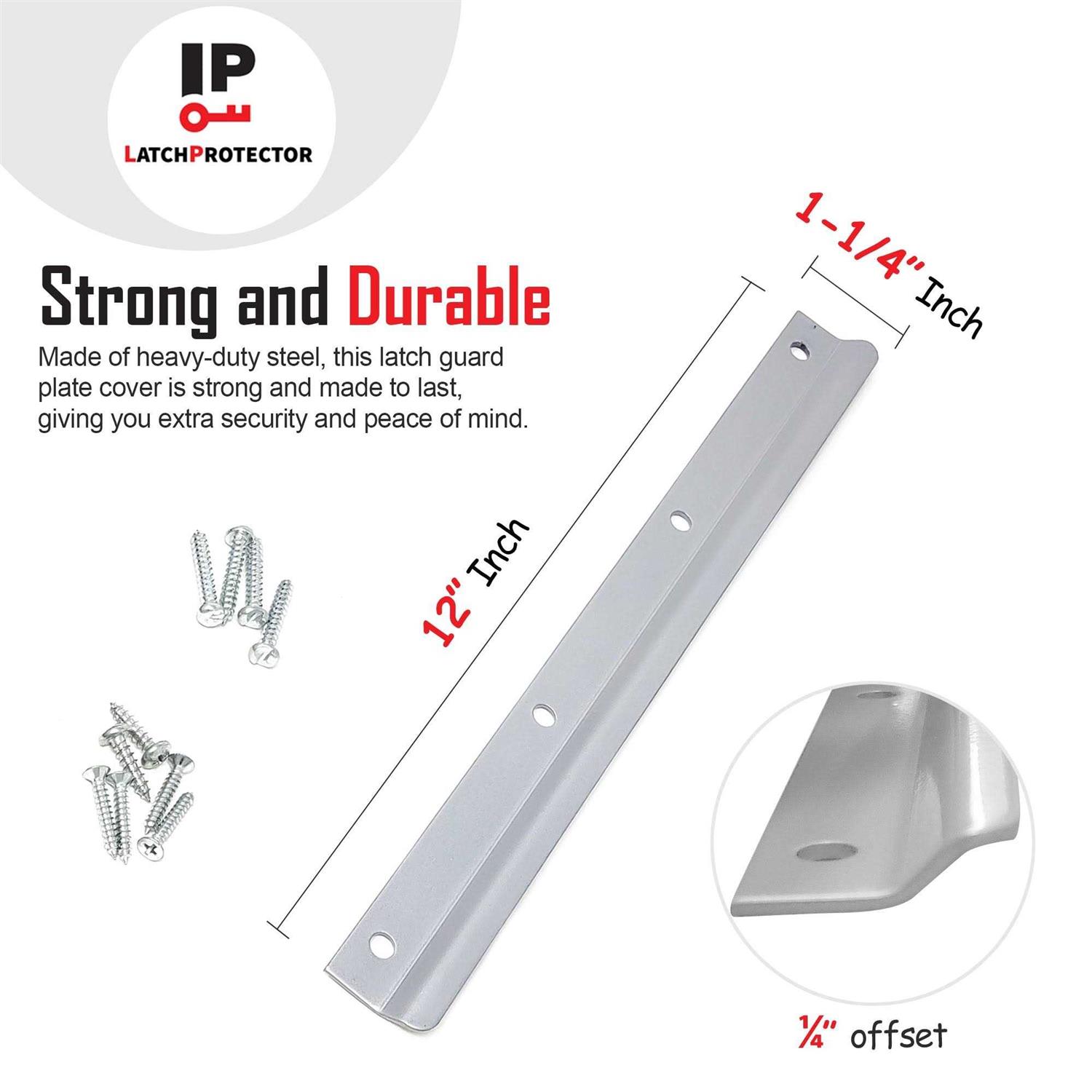12″ Length Durable Gray Painted Steel, can be field painted to match your door and hardware Includes one-way tamper proof screws for installation Protects the latch on inward swing wood or metal door from being pried open Great for apartments, garage, interior doors, safe room, panic room door latch Latch protector fastens to the Door and frame for security Guards the latch of any inward swinging door This latch shield is constructed of durable steel and comes in an appealing gray painted finish which can be field painted to match your existing door and hardware. It features an interlocking design to prevent access by forced entry on swing-in doors. This latch shield is designed for use with in-swinging doors and it can be used on residential, commercial and industrial applications. This Latch Protector can be mounted on wood and metal door systems. This item is complete with one-way, tamper-proof screws for use on jamb-mounted bracket. Installation is as easy as; present in place, mark holes, pre-drill and install. Note: A one-way driver bit or large flat head screw driver may be necessary to drive in one-way tamper resistant screws in lieu of a regular flat head screw driver.