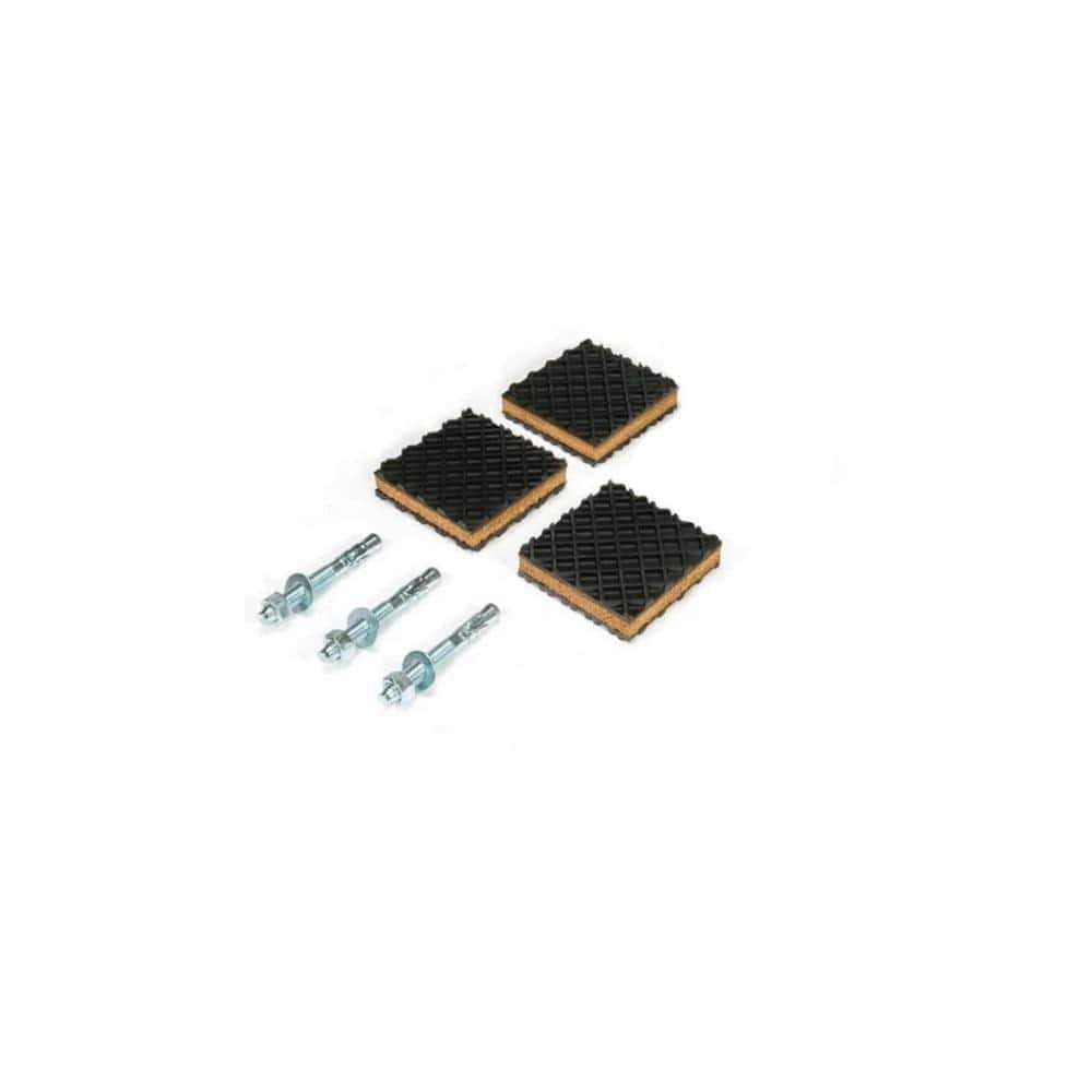 Installation kit for an Ingersoll Rand air compressor with a vertical tank. Everything you need for mounting your air compressor to the floor. Includes vibration pads which lessen noise and vibration created by air compressor operation.