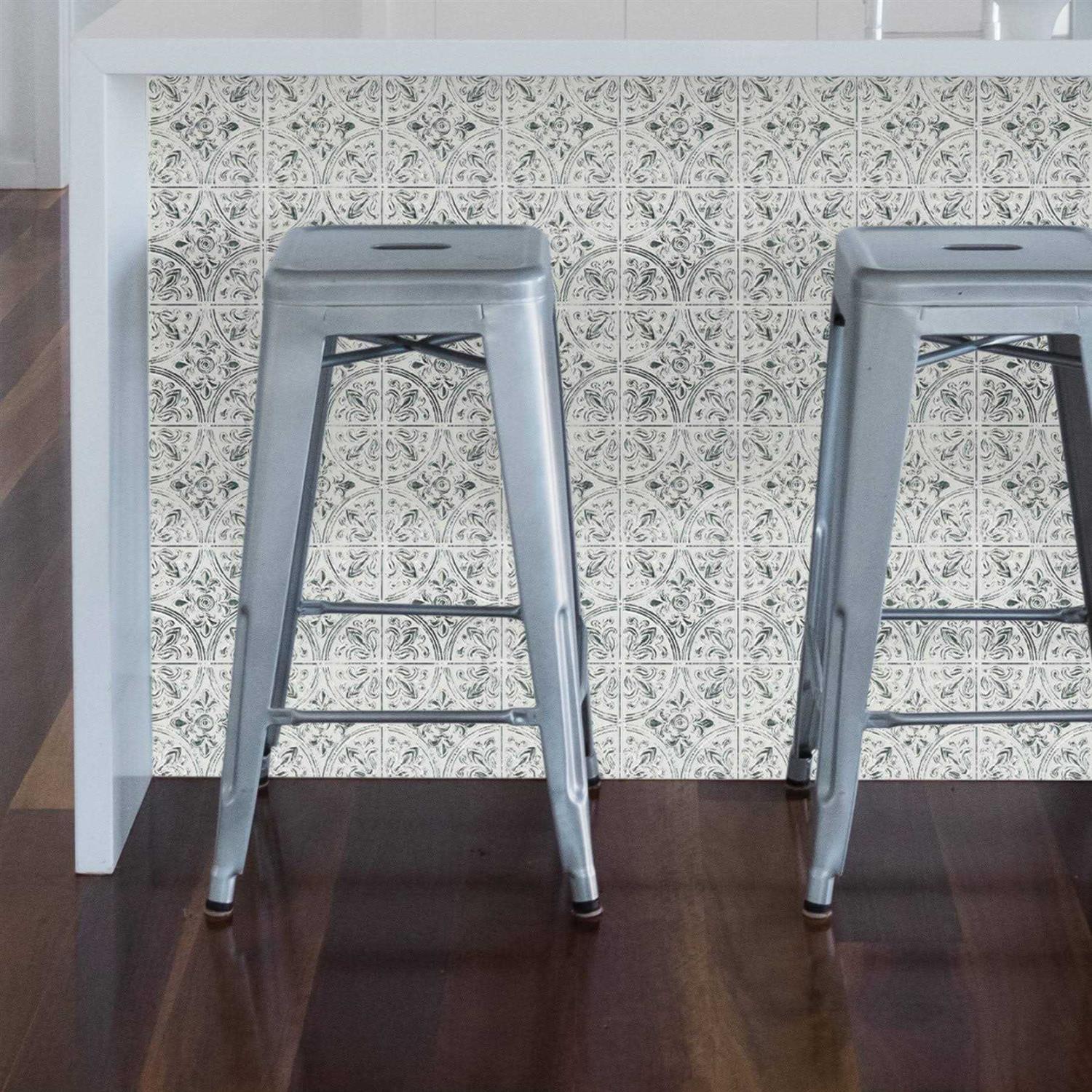 Add a vintage charm to your kitchen with this peel and stick backsplash. Its antique off-white hue adds a realistic touch to its tile pattern. Chelsea Antique White Peel Stick Tin Tiles contains 4 pieces on 4 sheets that measure 10 x 10 inches. This product measures 20-in x 20-in when assembled when assembled.