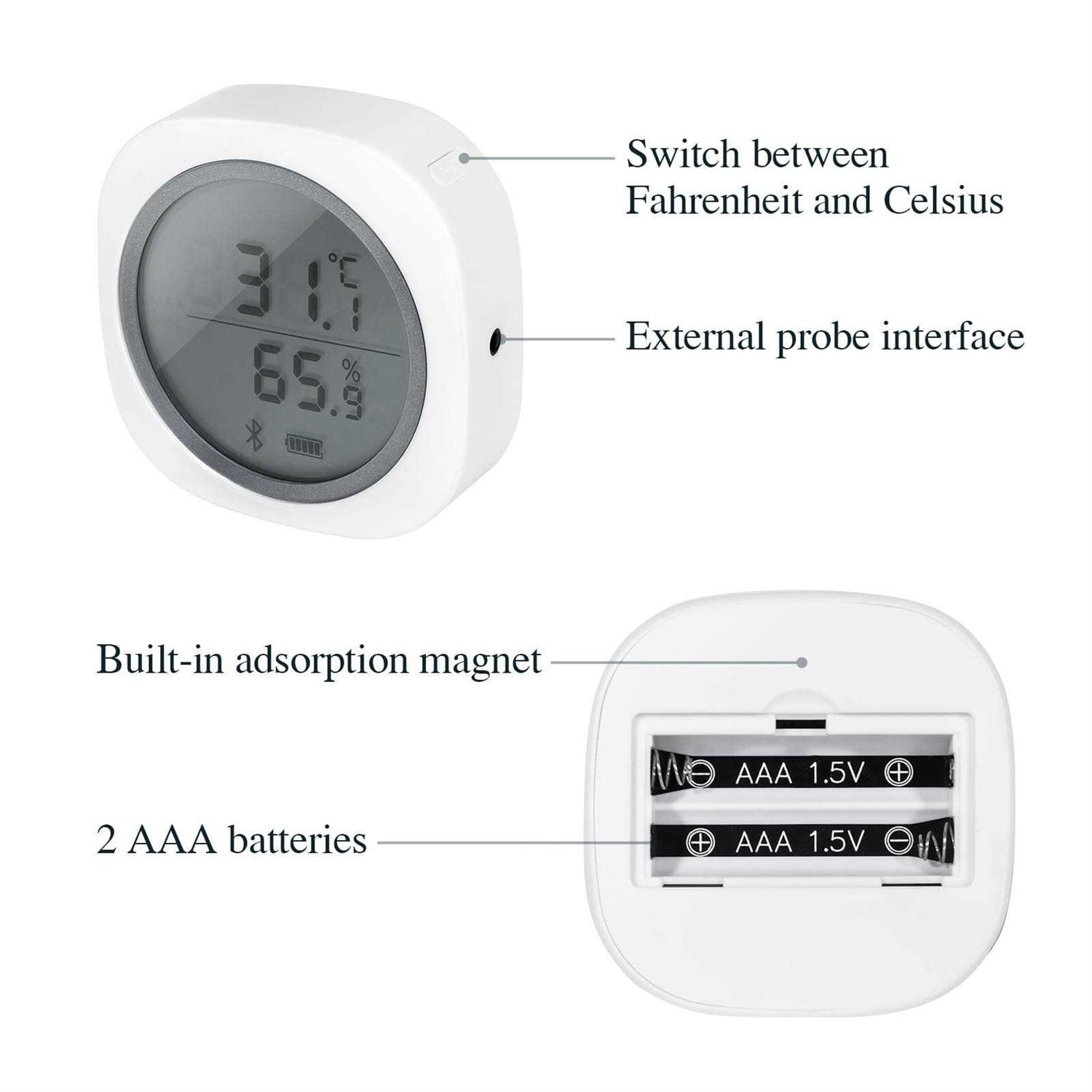 The Bluetooth Temperature & Humidity Smart Sensor IBS-TH1 Plus Data logger can be easy to pair with our Android and IOS phones. The temperature and humidity will display on screen. Which will provide the ideal solution for monitoring T&H conditions. IBS-TH1 Plus can perfectly monitor your home, car, clothes, pet, fruit, cigar, beer,meat ,greenhouse and much more.