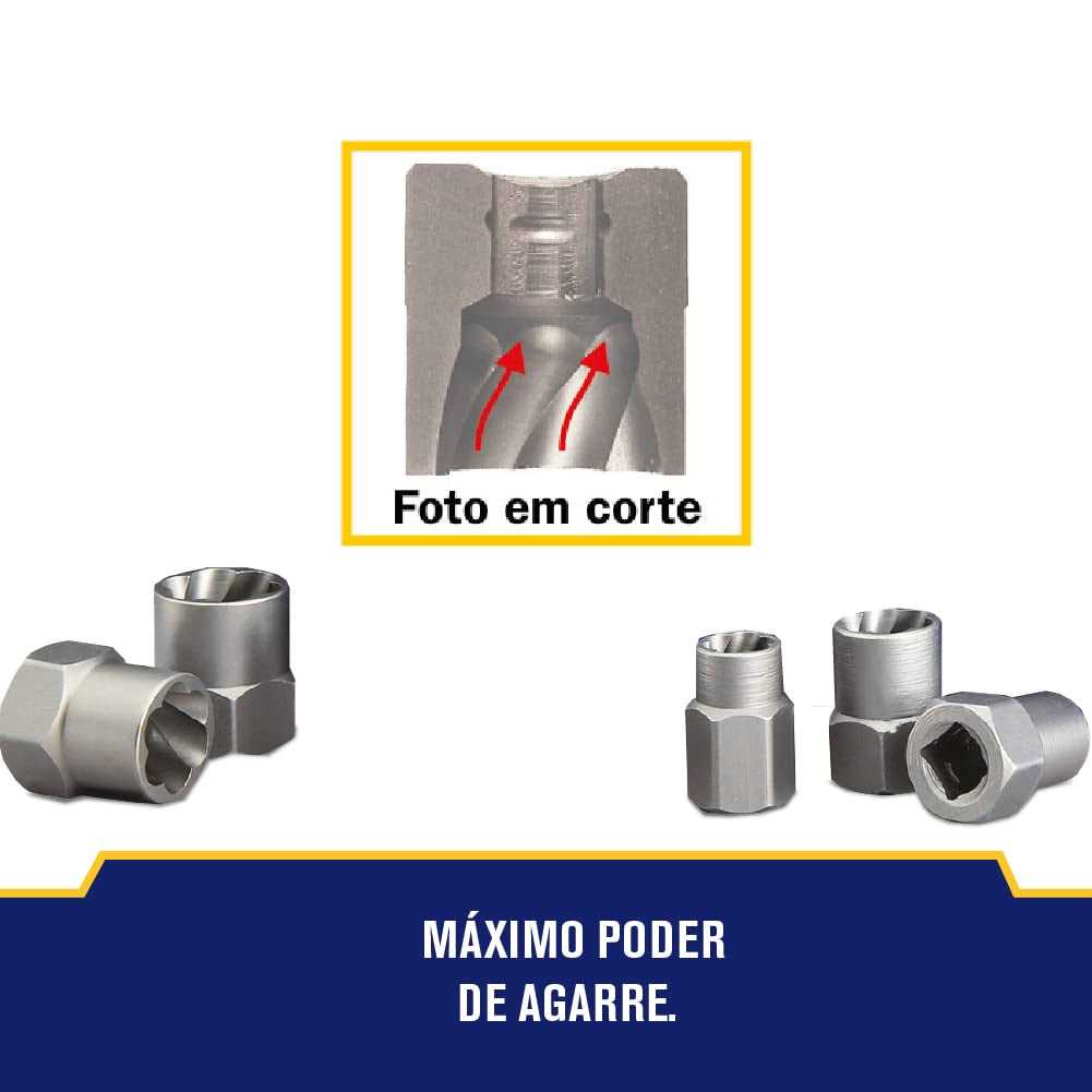 • For easy removal of rounded-off, rusted tight or painted-over bolts