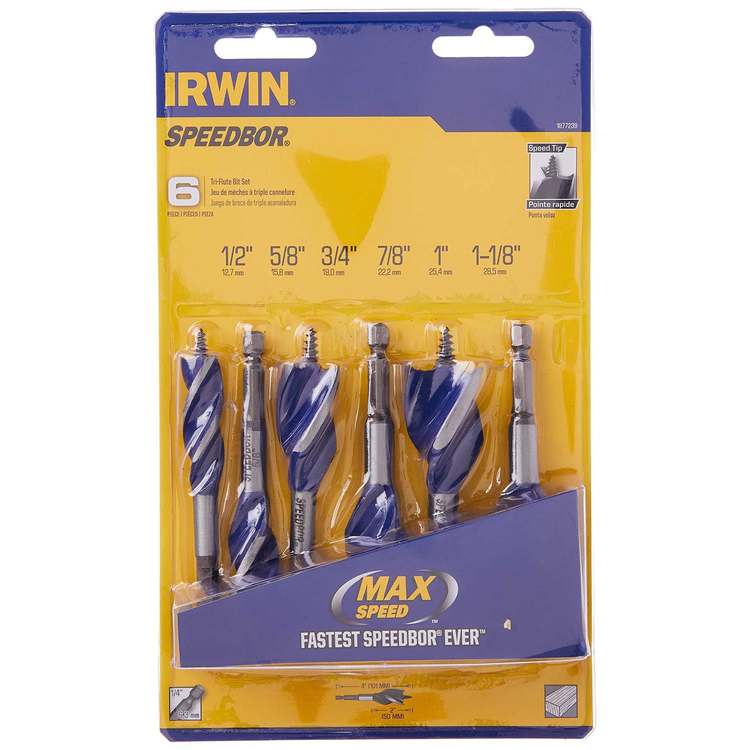 SPEEDBOR 1877239 Irwin Tools Max Wood Drilling Bits 4-Inch 6-Piece