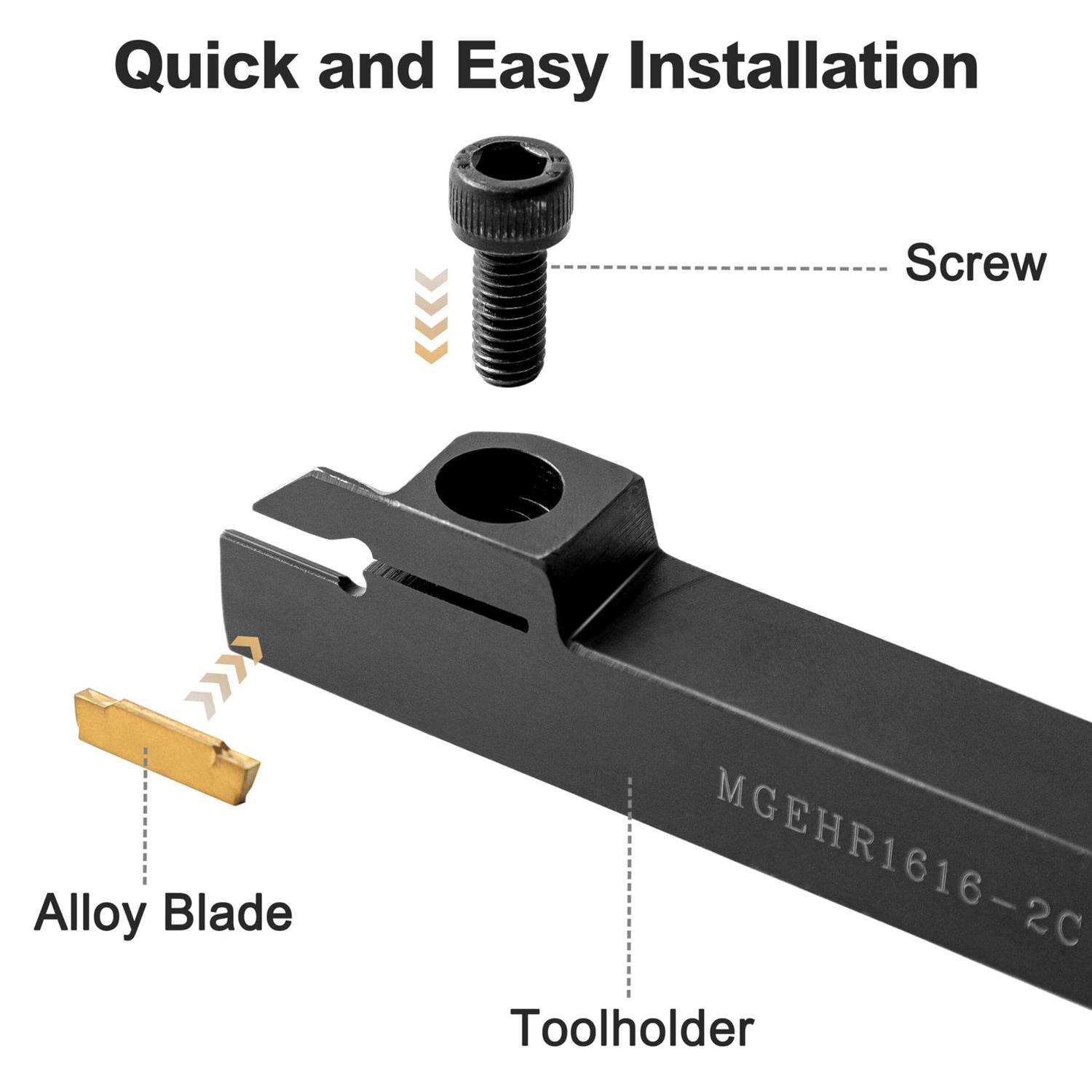 - Package Includes – 3pcs grooving bar(MGIVR2016-2/MGEHR1616-2/MGEHL1616-2) + 10PCS grooving inserts(MGMN200) + 3pc wrenches