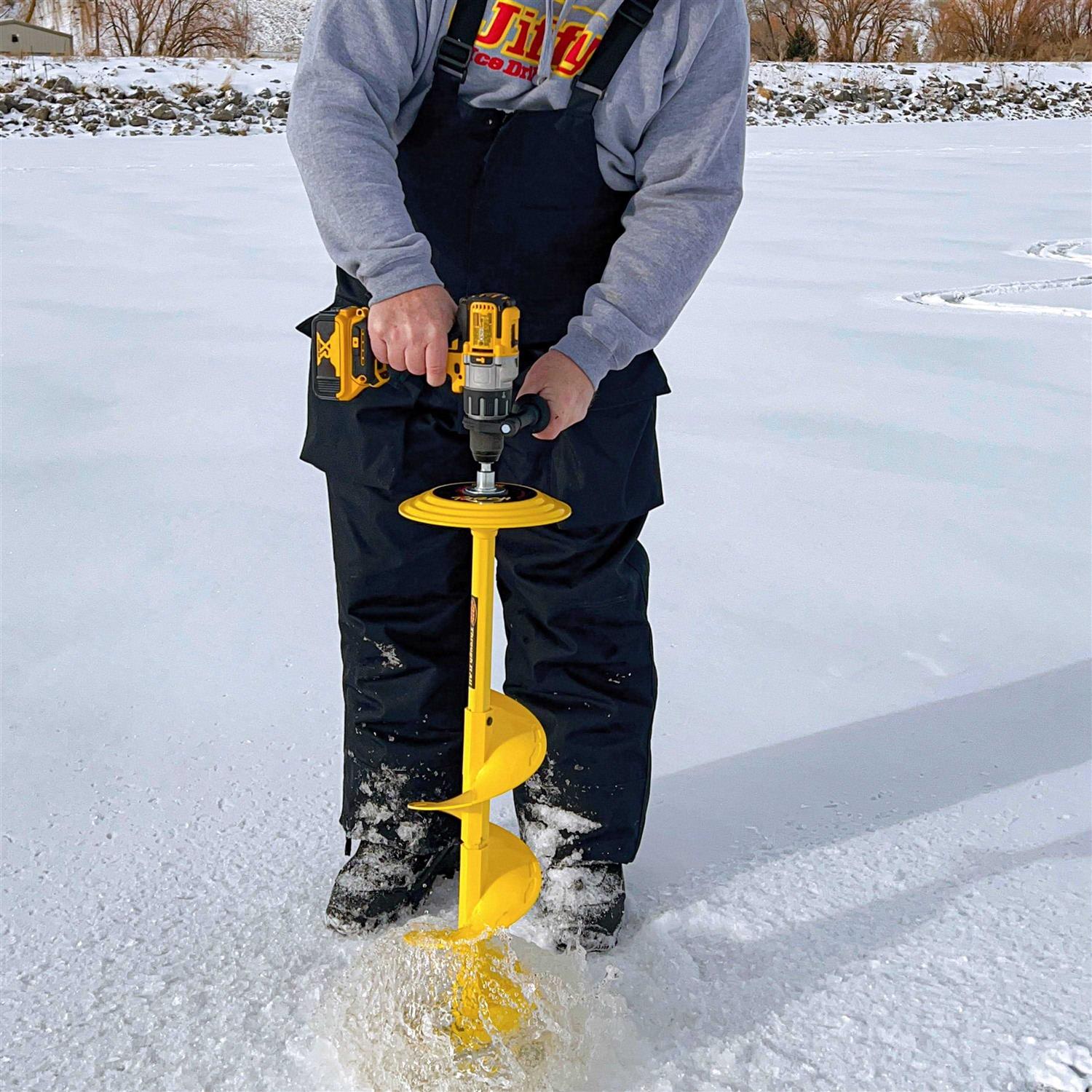 Turn your cordless or electric drill into an ice auger with the Jiffy Torch 8 inch Drill Bit. It’s quick and easy to connect, and features high-carbon steel ripper blades that aggressively chew through thick ice. Can be used with cordless drill or electric powerhead Quickly connects with no tools needed High-strength steel hex shaft High carbon steel ripper cutting blades Right hand rotation 8 inch diameter, 5 lbs. Order today!