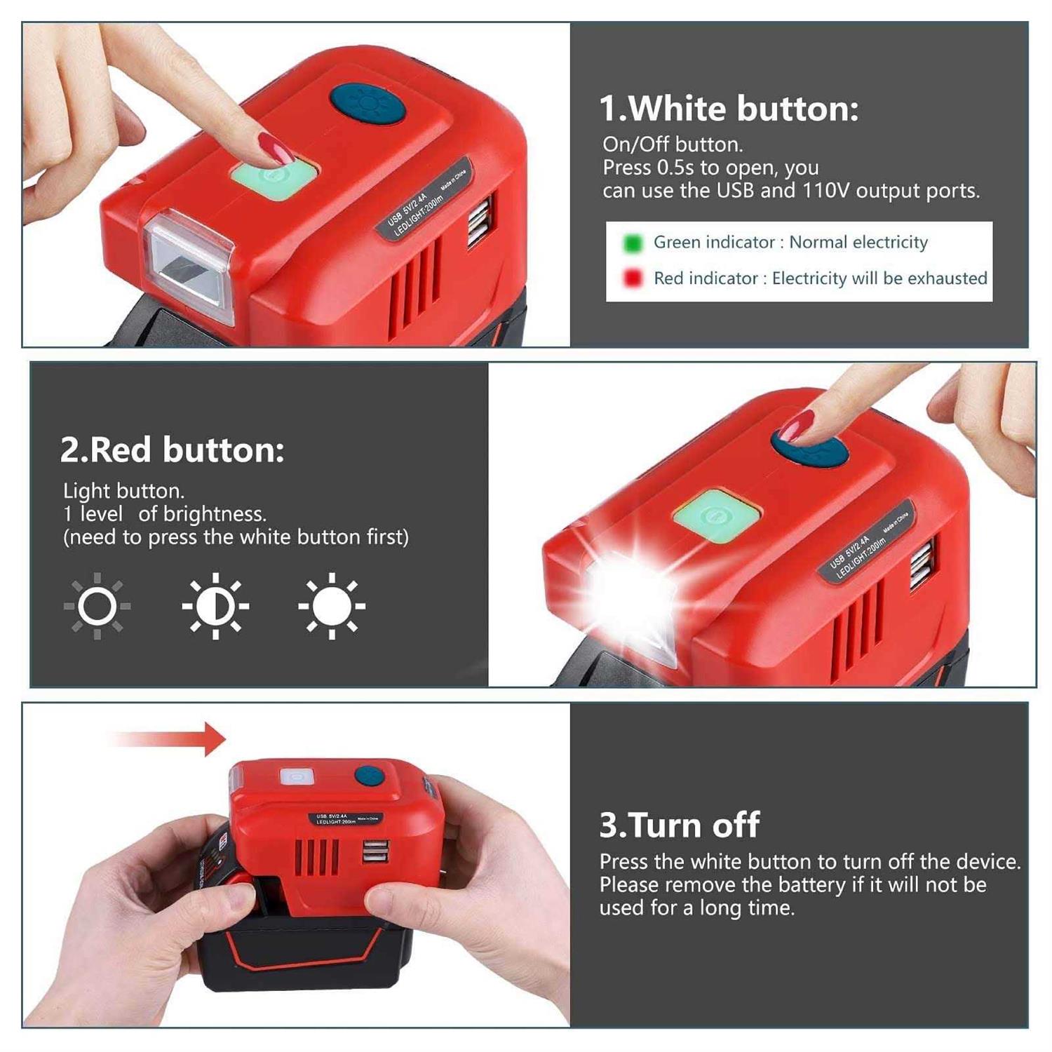 Battery Chargers by JJXNDO. Details:Attention: the AC outlet is suitable for US plug only. And our package includes inverter only, battery is not included. Please press the white button to turn off the inverter, and if not use, please remove the battery off.